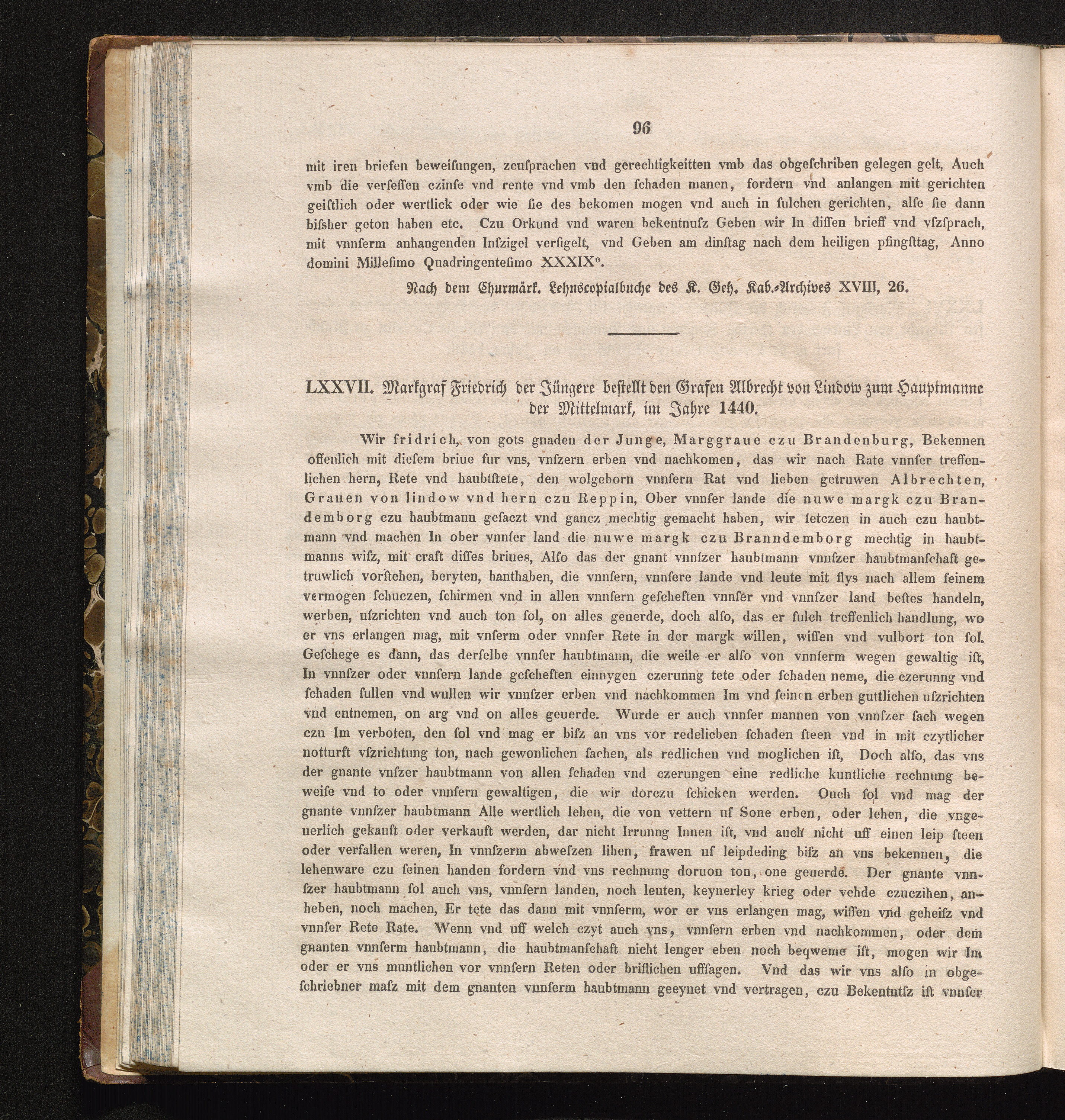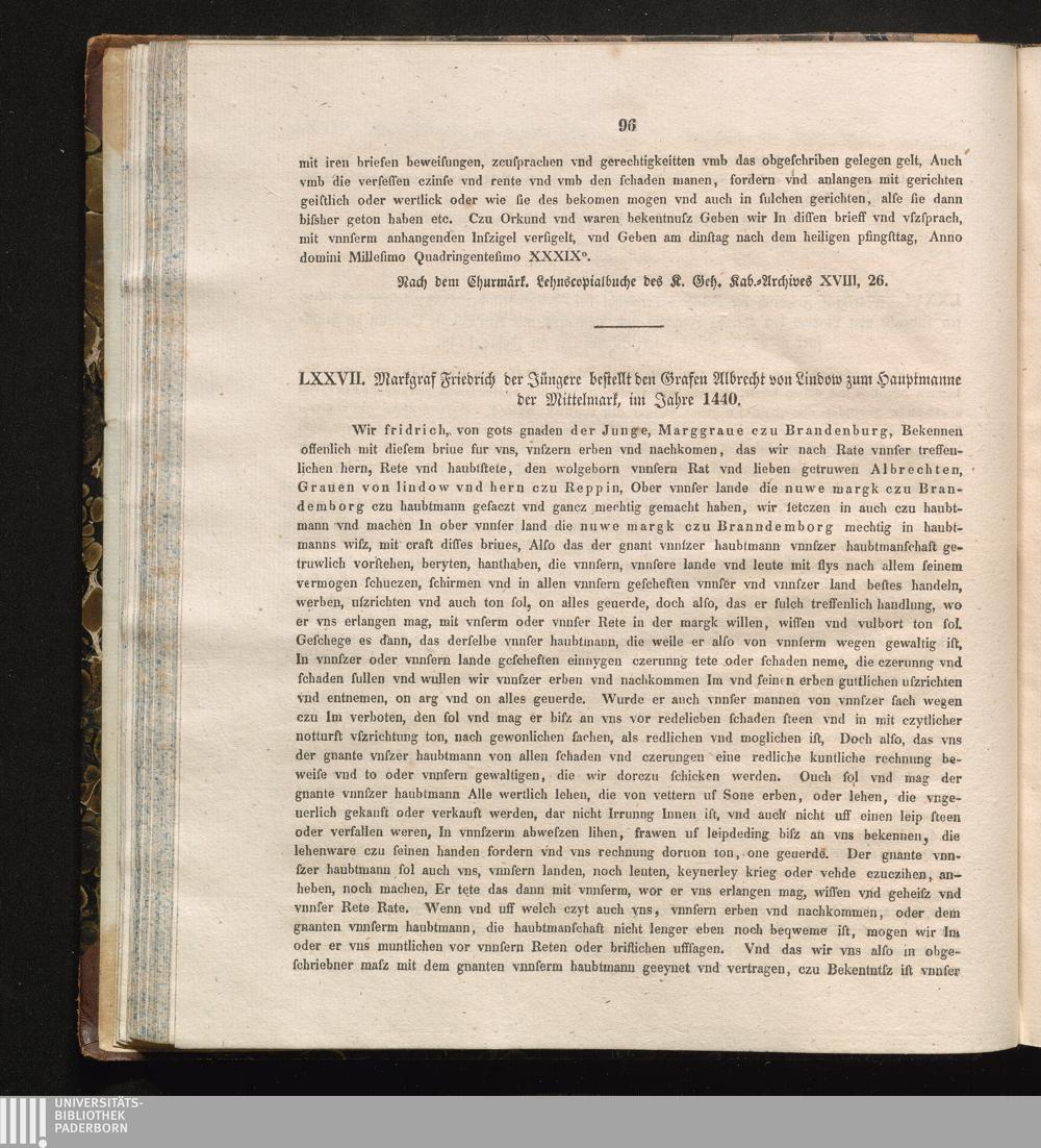 LXXVII. Markgraf Friedrich der Jüngere bestellt den Grafen Albrecht von Lindow zum[...]