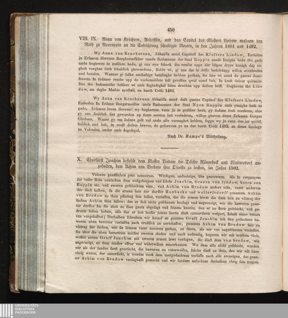 X. Churfürst Joachim befiehlt dem Kloster Lindow die Dörfer Rönnebeck und Woltersdorf[...]