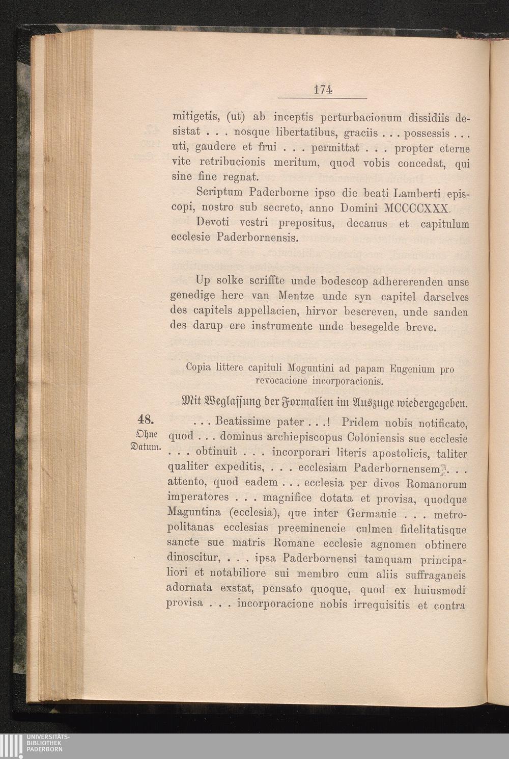 48. Litera capituli Moguntini pape scripta pro incorporationis revocatione.