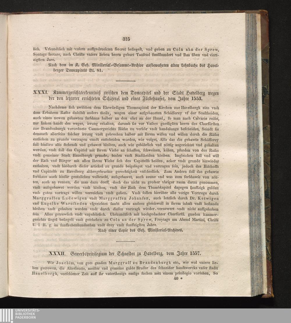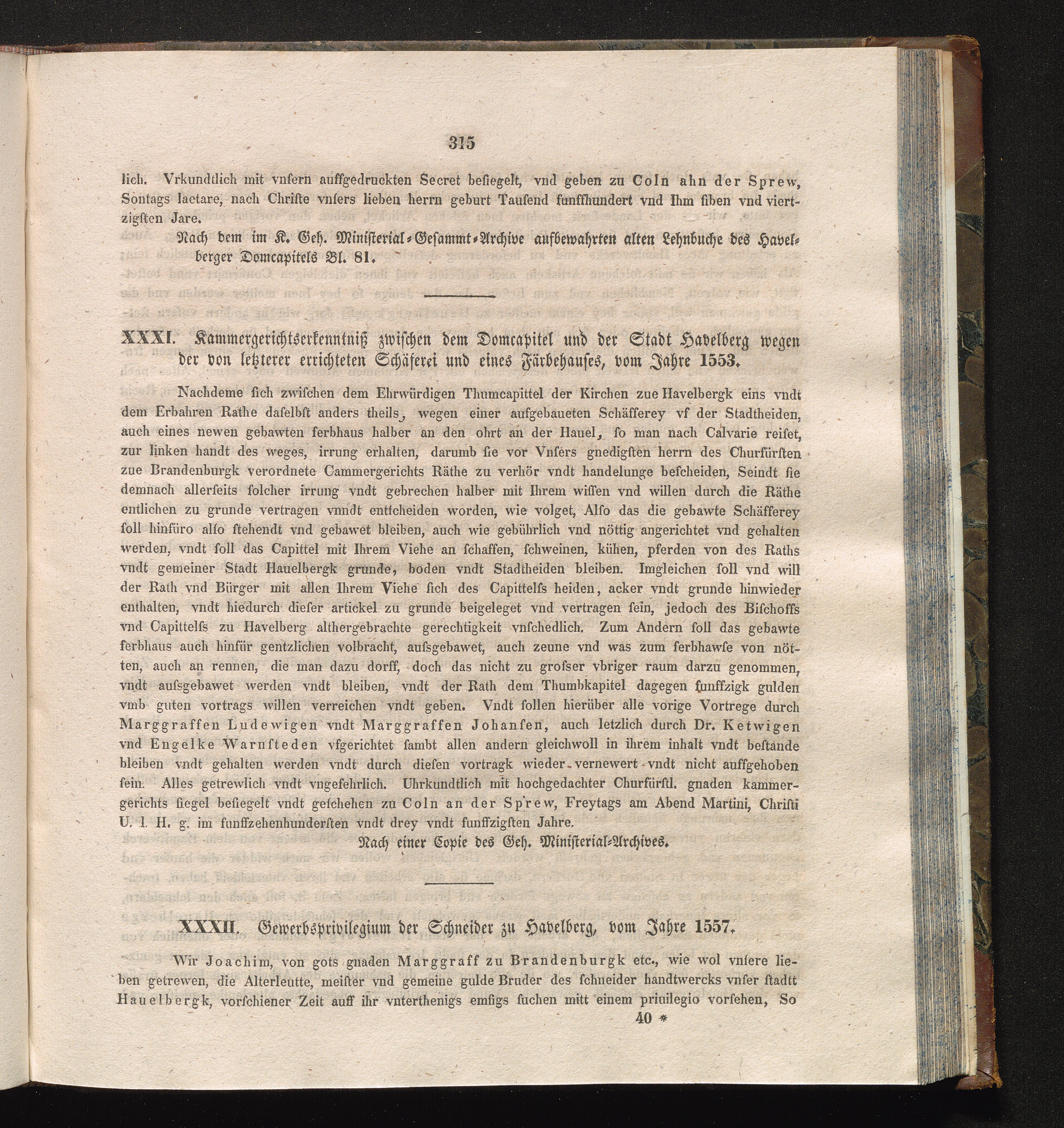 XXXII. Gewerbsprivilegium der Schneider zu Havelberg, vom Jahre 1557.