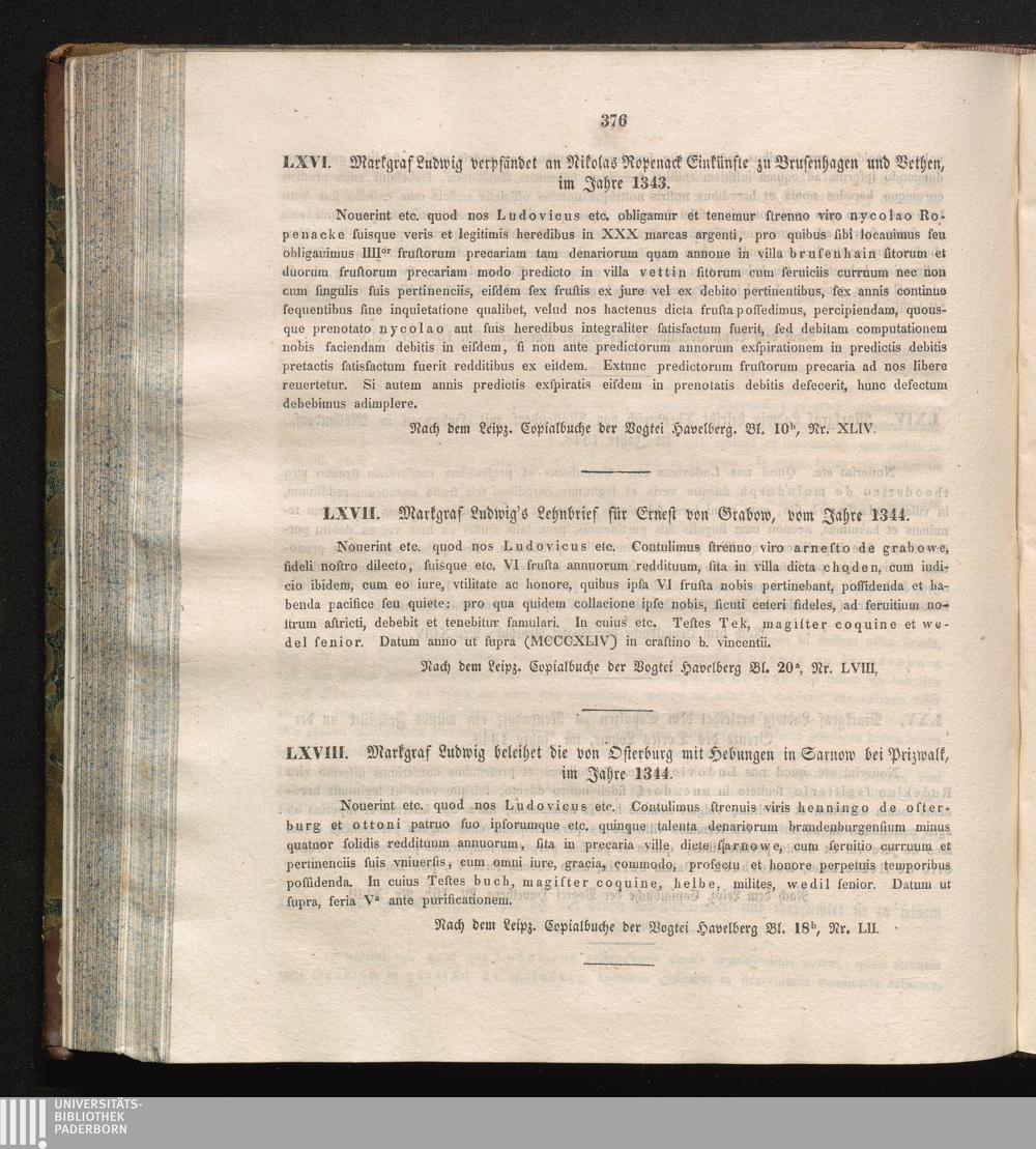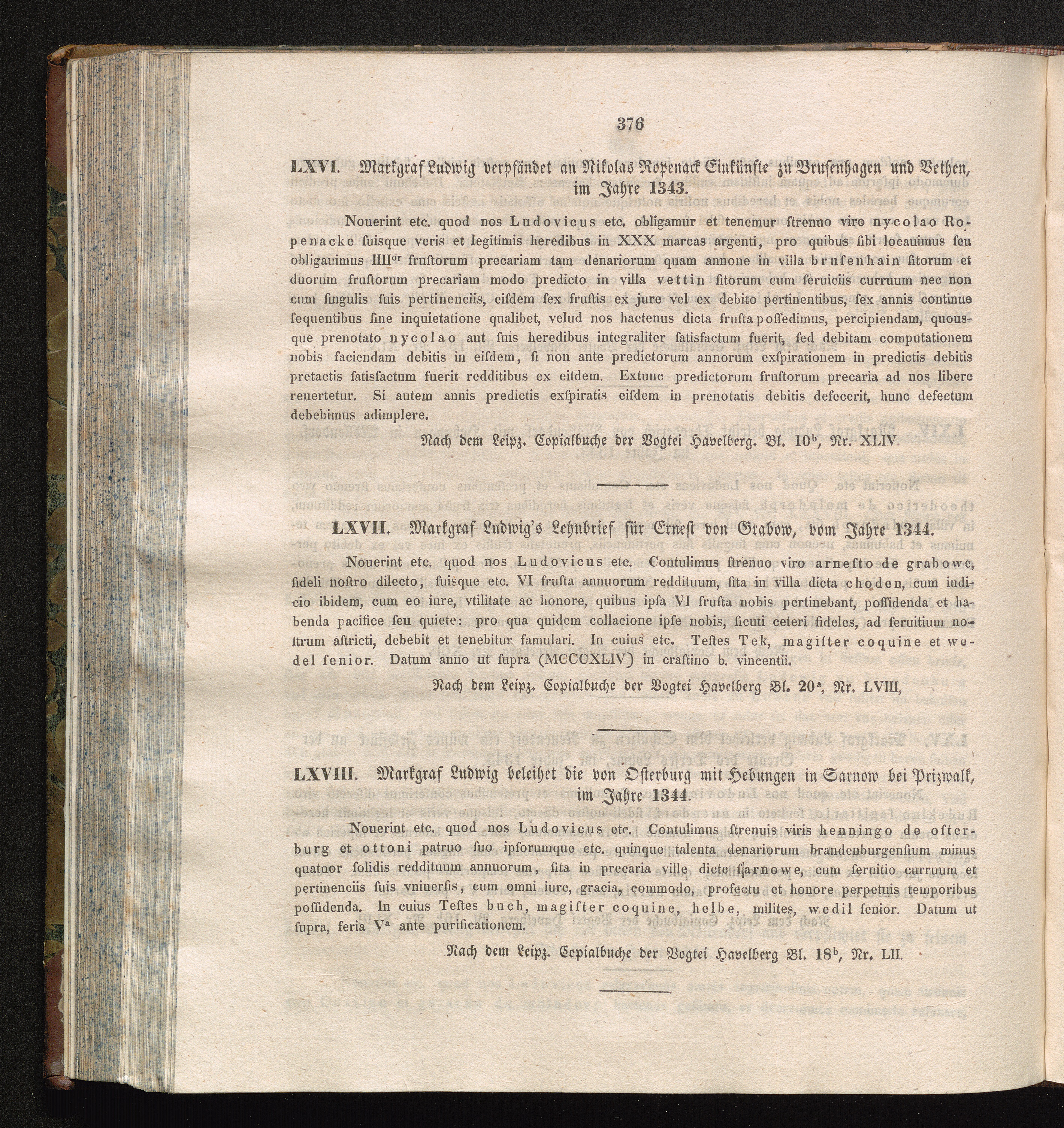 LXVIII. Markgraf Ludwig beleihet die von Osterburg mit Hebungen in Sarnow bei Pritzwalk,[...]