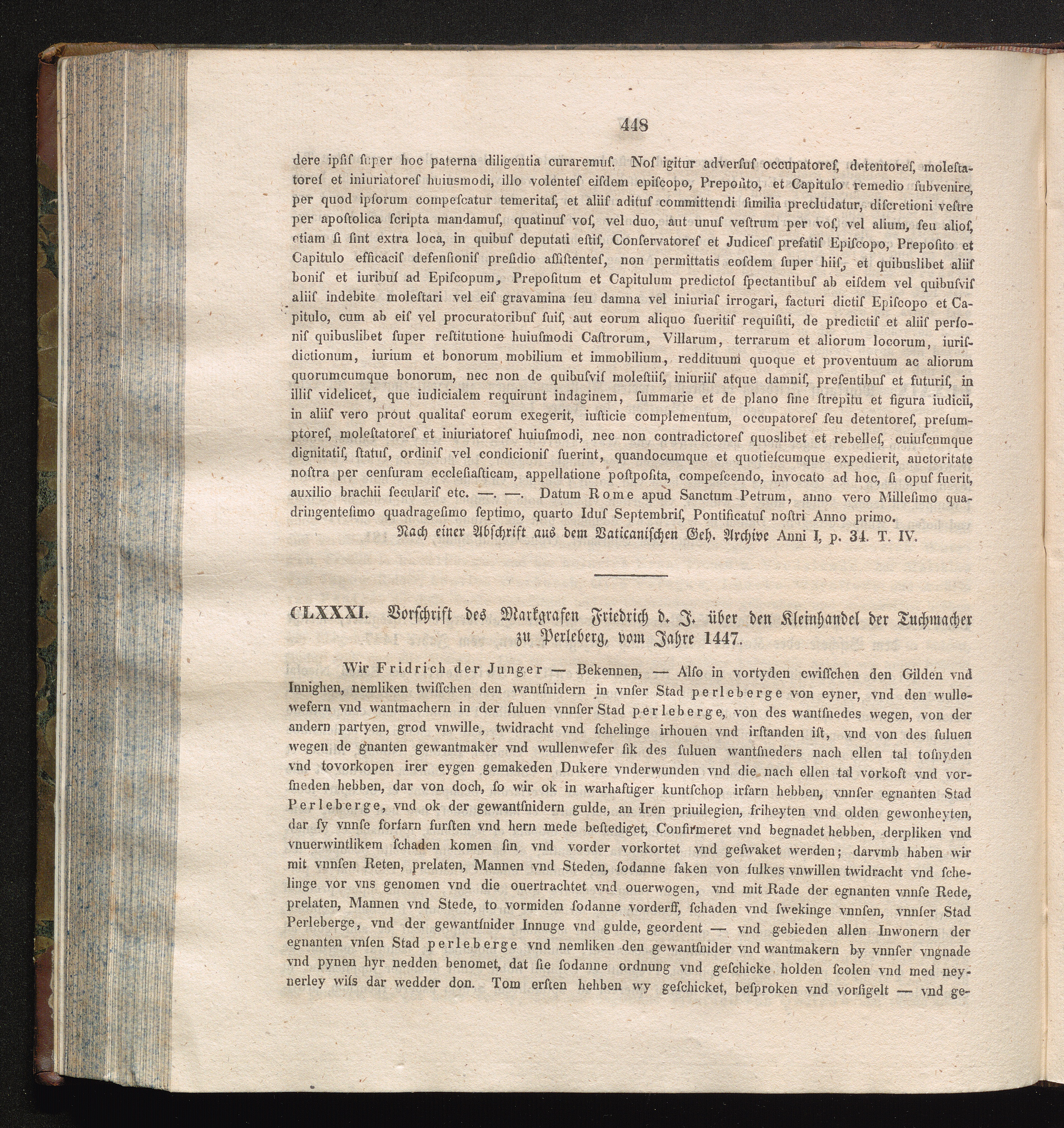 CLXXXI. Vorschrift des Markgrafen Friedrich d. J. über den Kleinhandel der Tuchmacher[...]