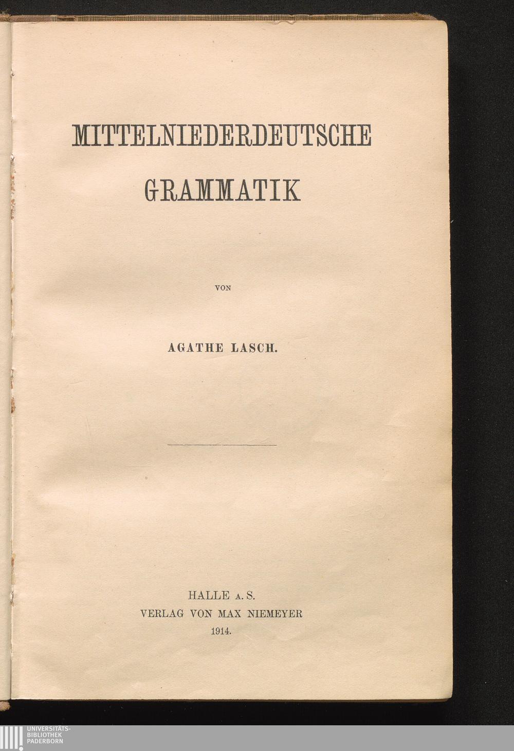 Mittelniederdeutsche Grammatik / Agathe Lasch