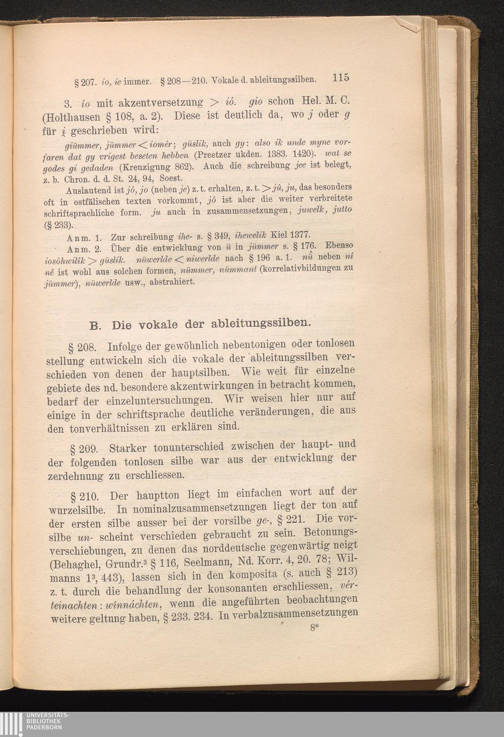 B. Die vokale der ableitungssilben § 208-222