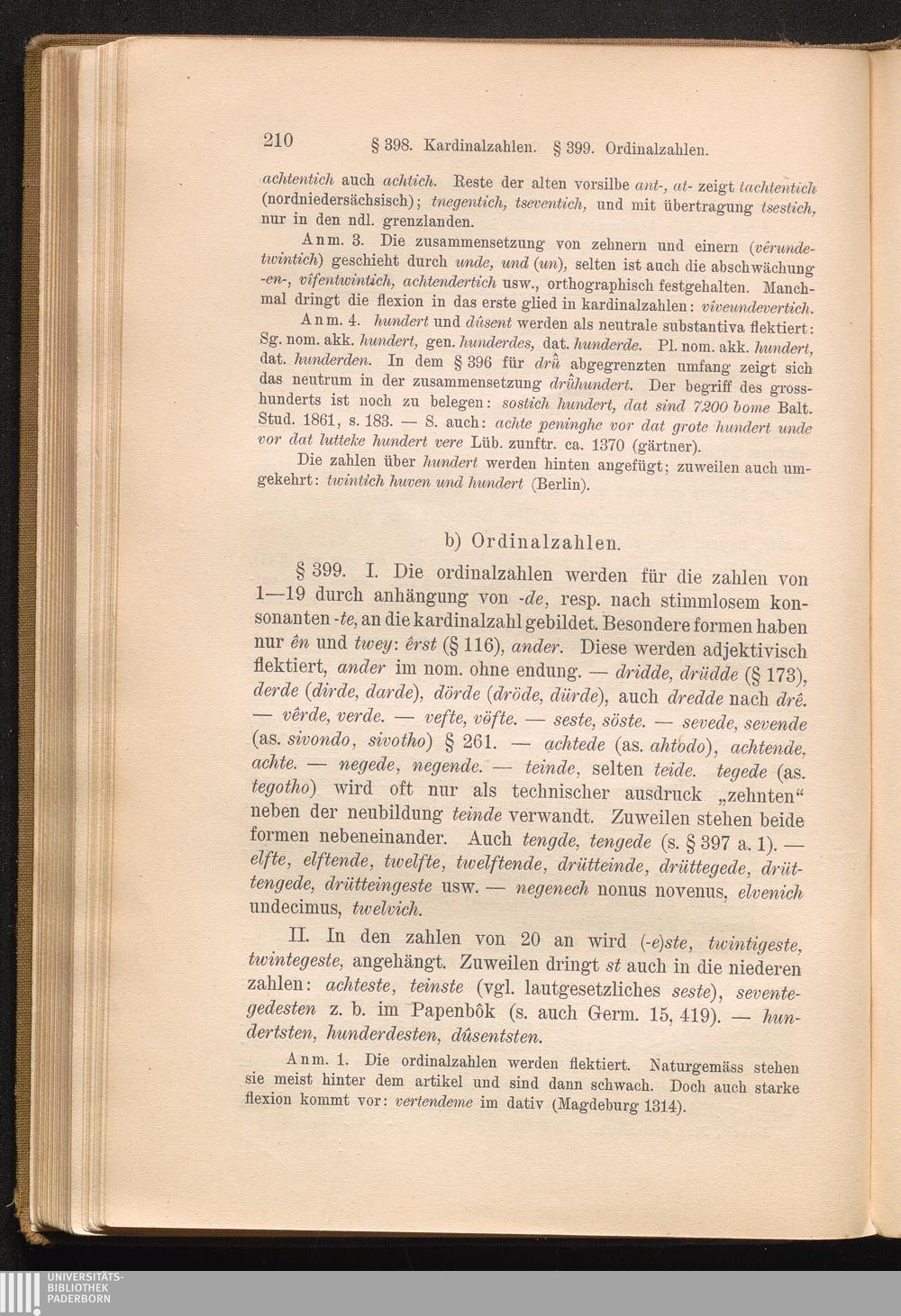 b) Ordinalzahlen § 399