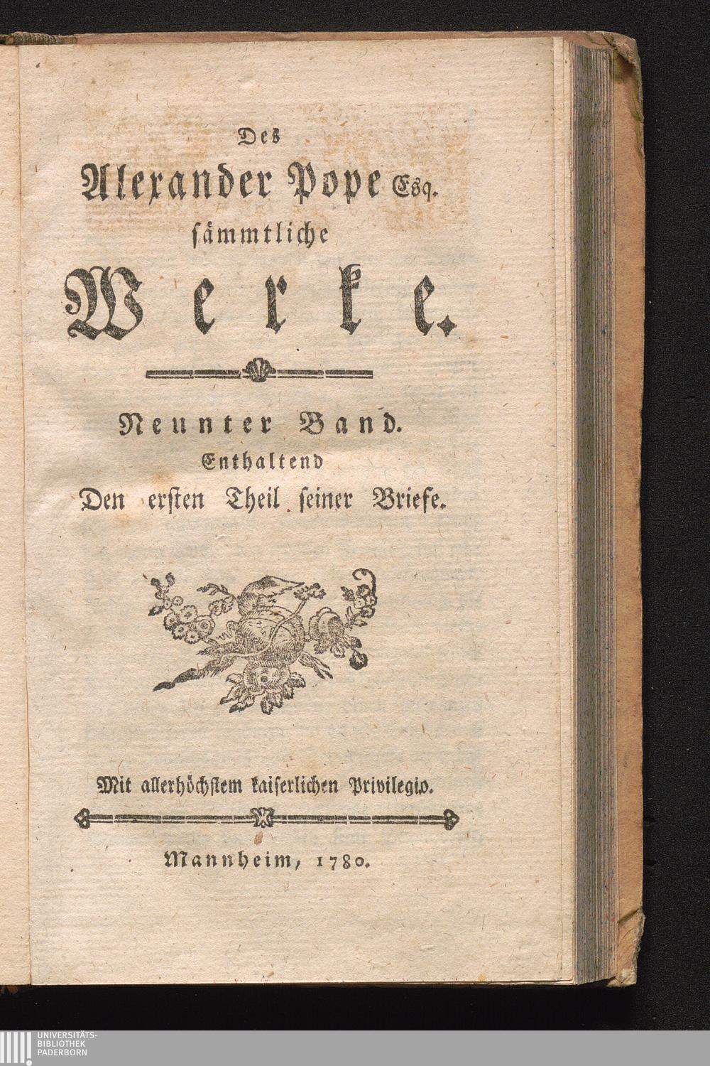 Neunter Band (1780) Enthaltend Den ersten Theil seiner Briefe