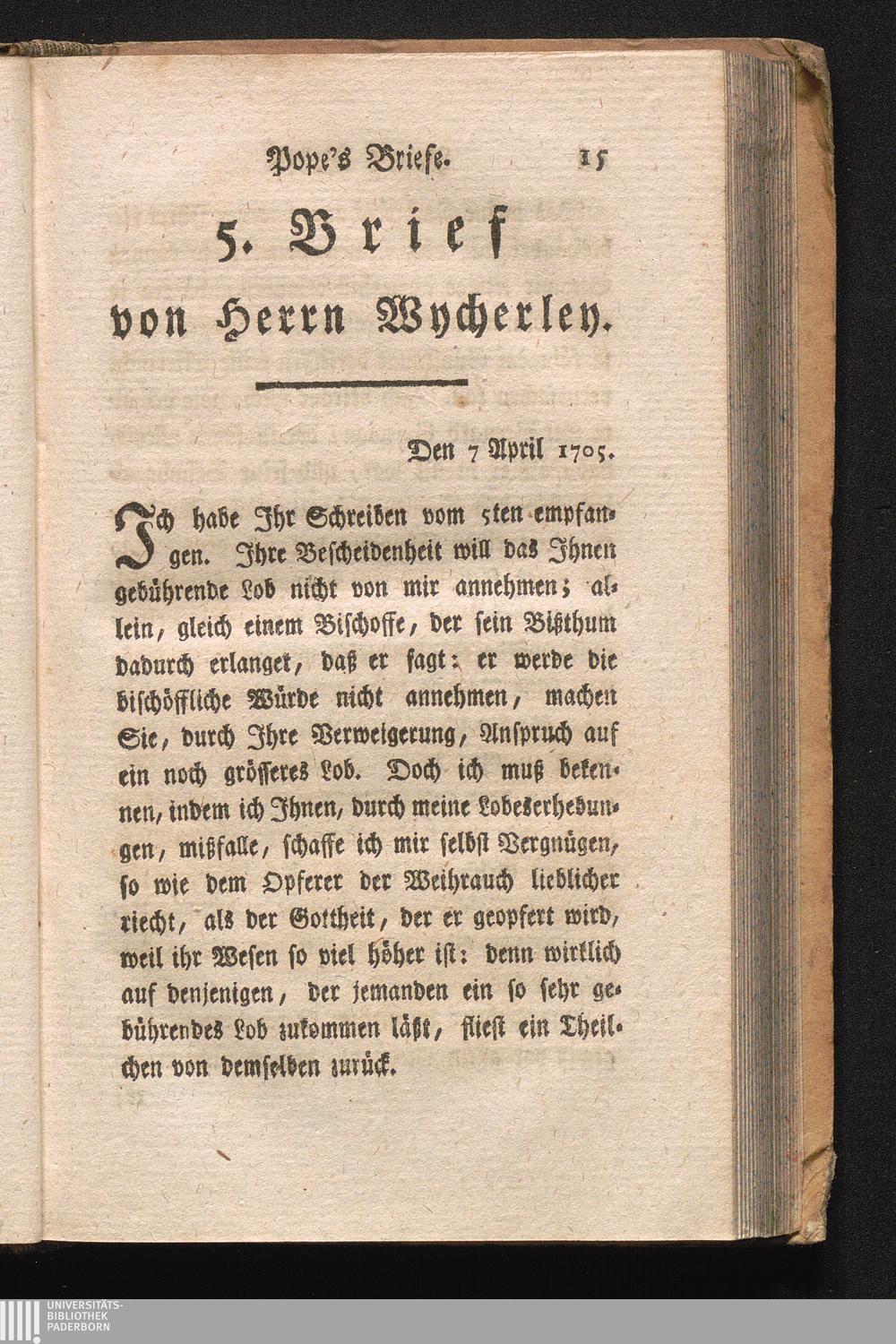 Briefe an und von Herrn Wycherley, von 1704, bis 1710.
