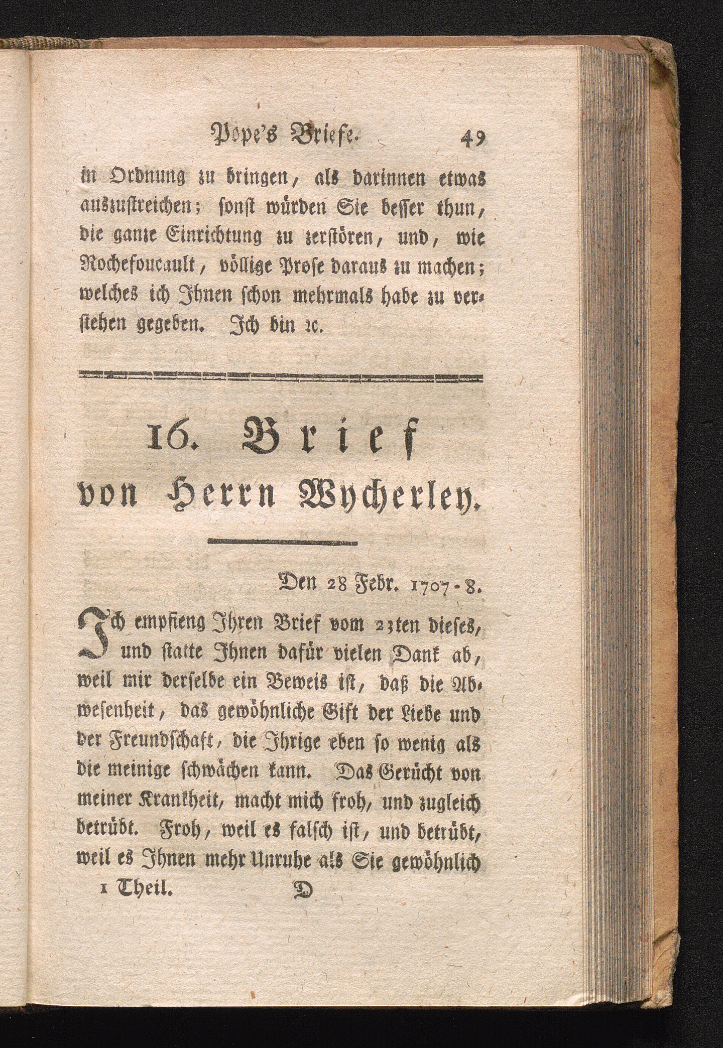 XVI. Von Herrn Wycherley, nach seiner Genesung.