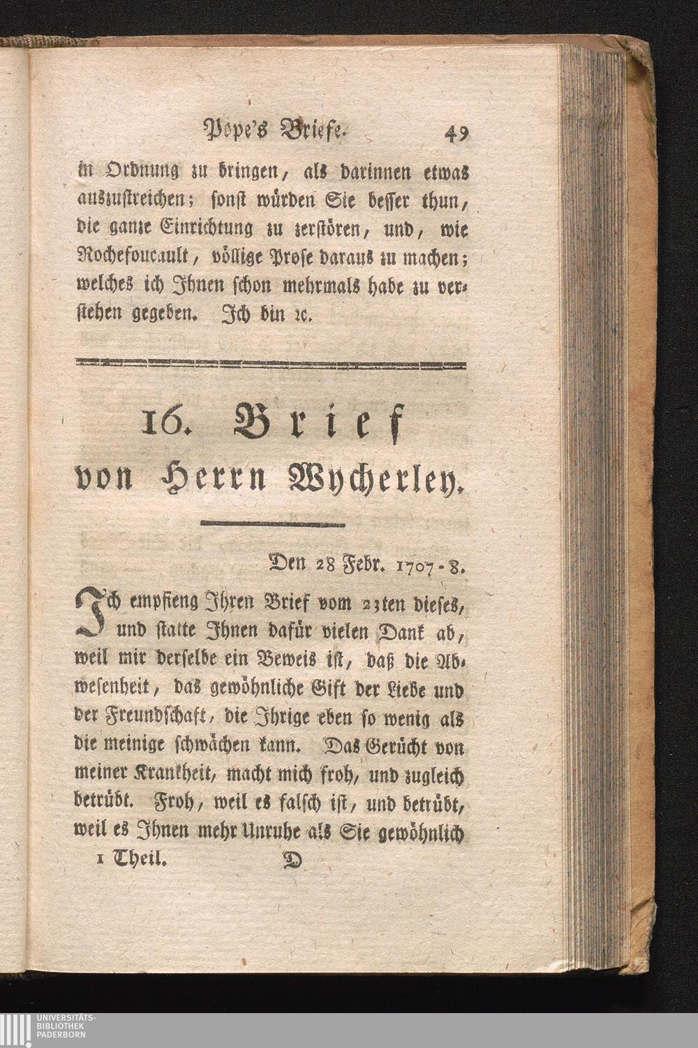 Briefe an und von Herrn Wycherley, von 1704, bis 1710.