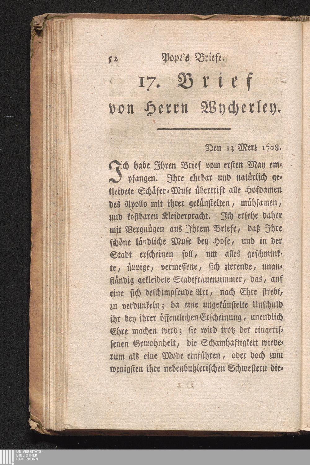 Briefe an und von Herrn Wycherley, von 1704, bis 1710.