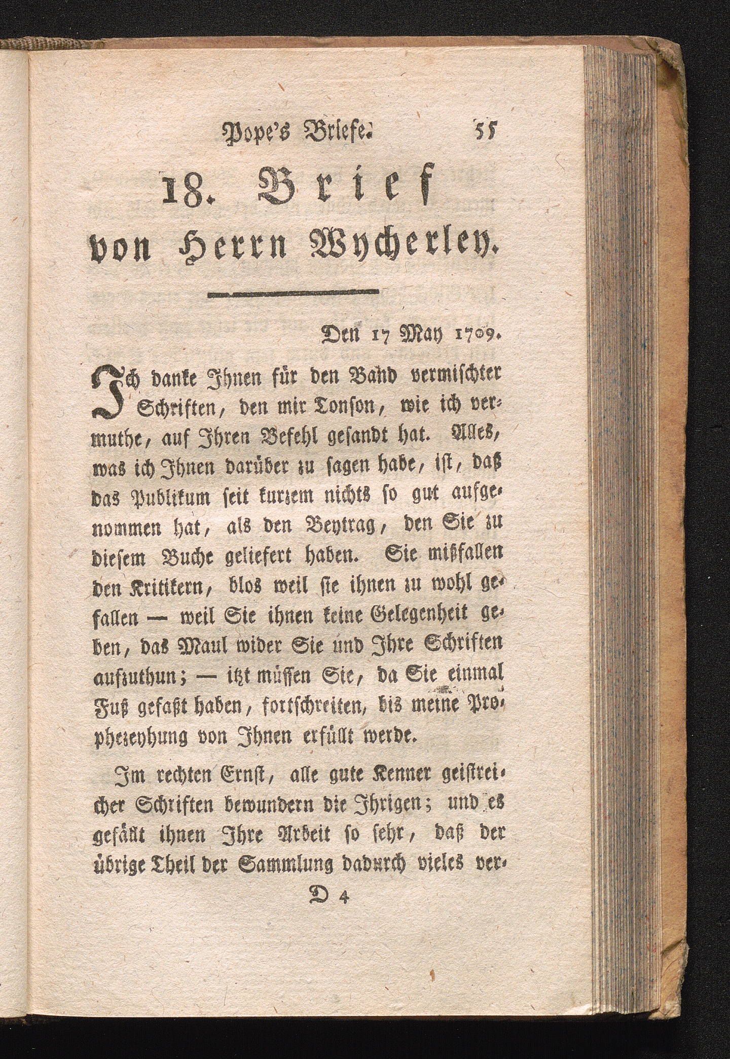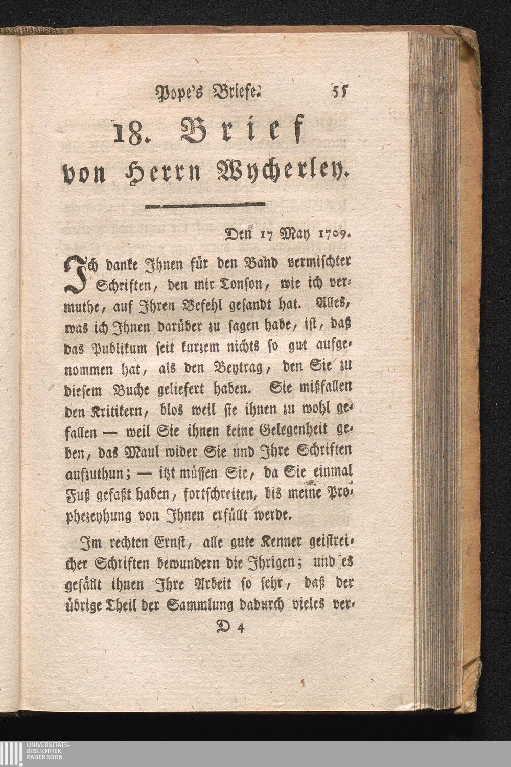 Briefe an und von Herrn Wycherley, von 1704, bis 1710.