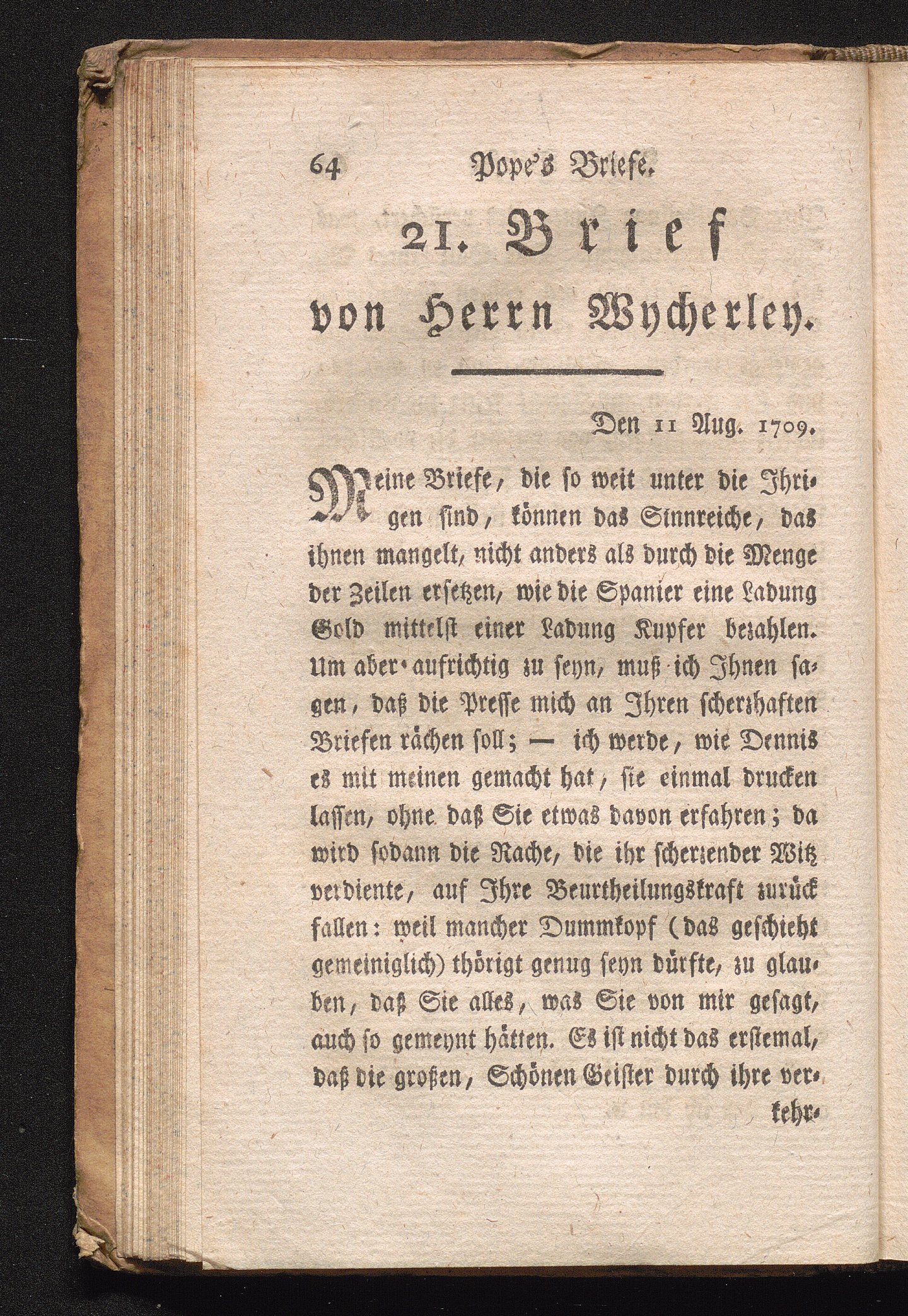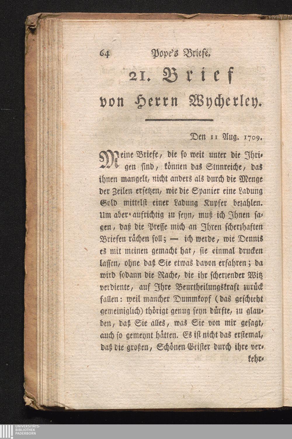 Briefe an und von Herrn Wycherley, von 1704, bis 1710.