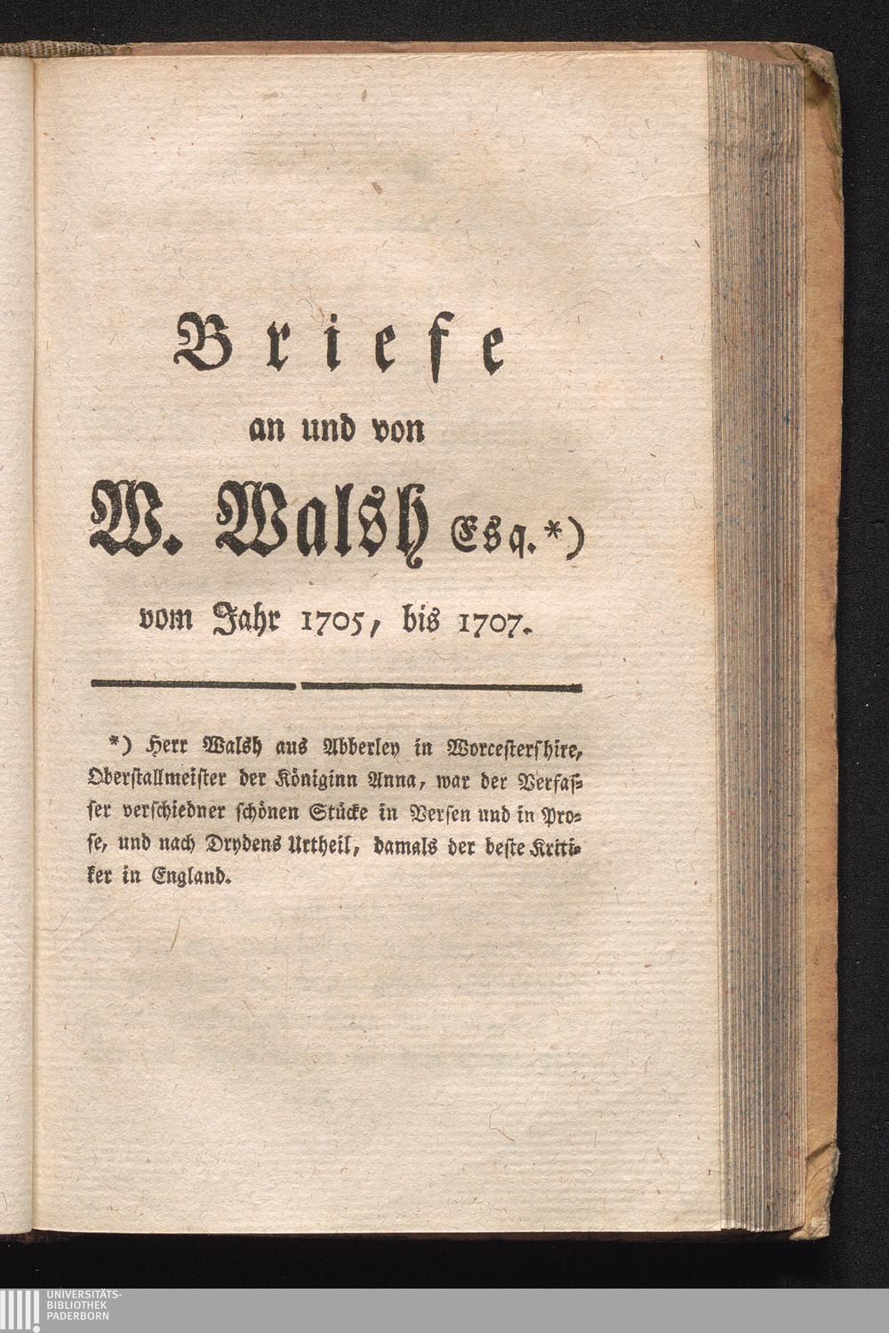 Briefe and und von W. Walsh, Esq. von 1705, bis 1707.