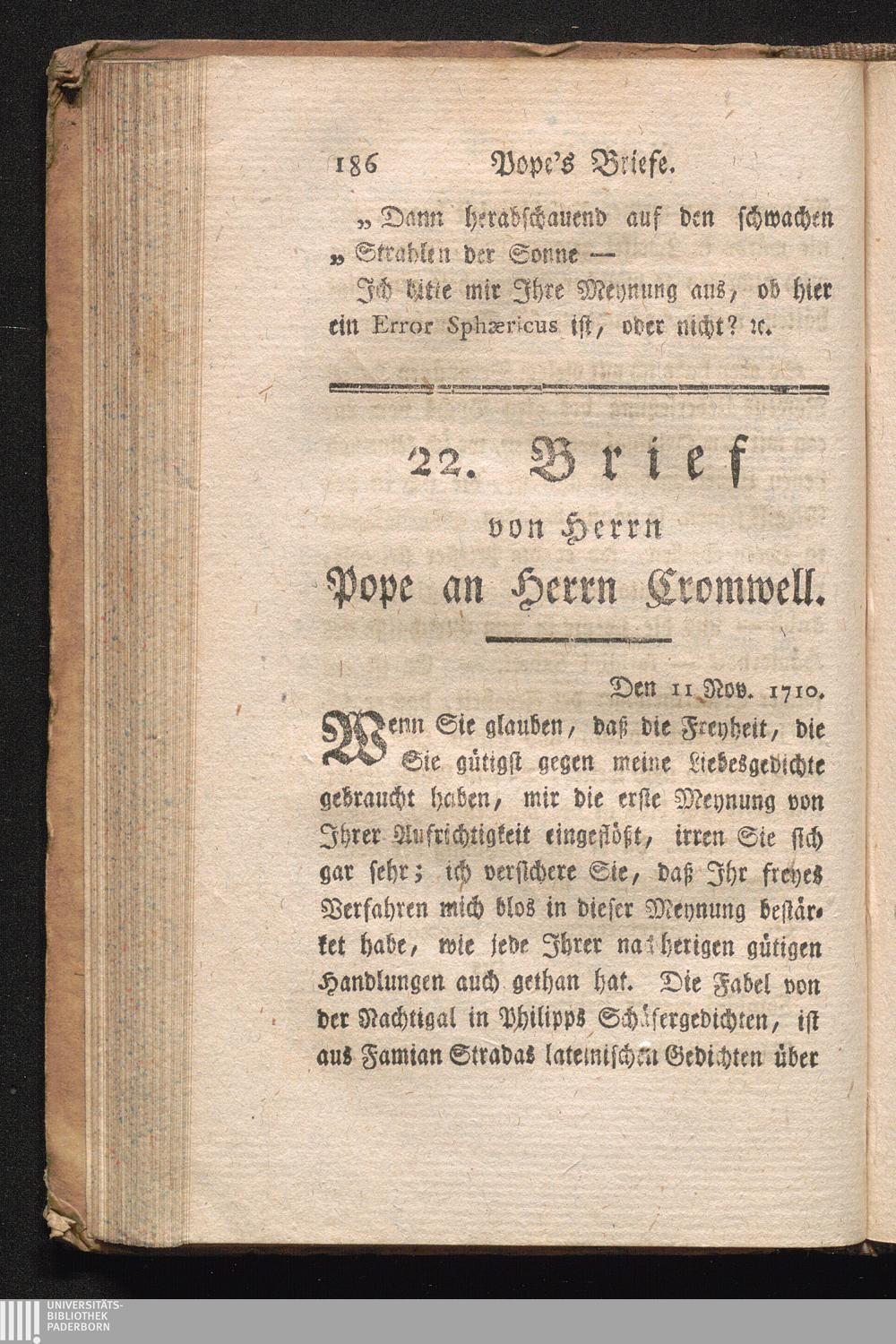 XXII. Antwort auf den vorigen: eine andre Kritik über den Lucan.