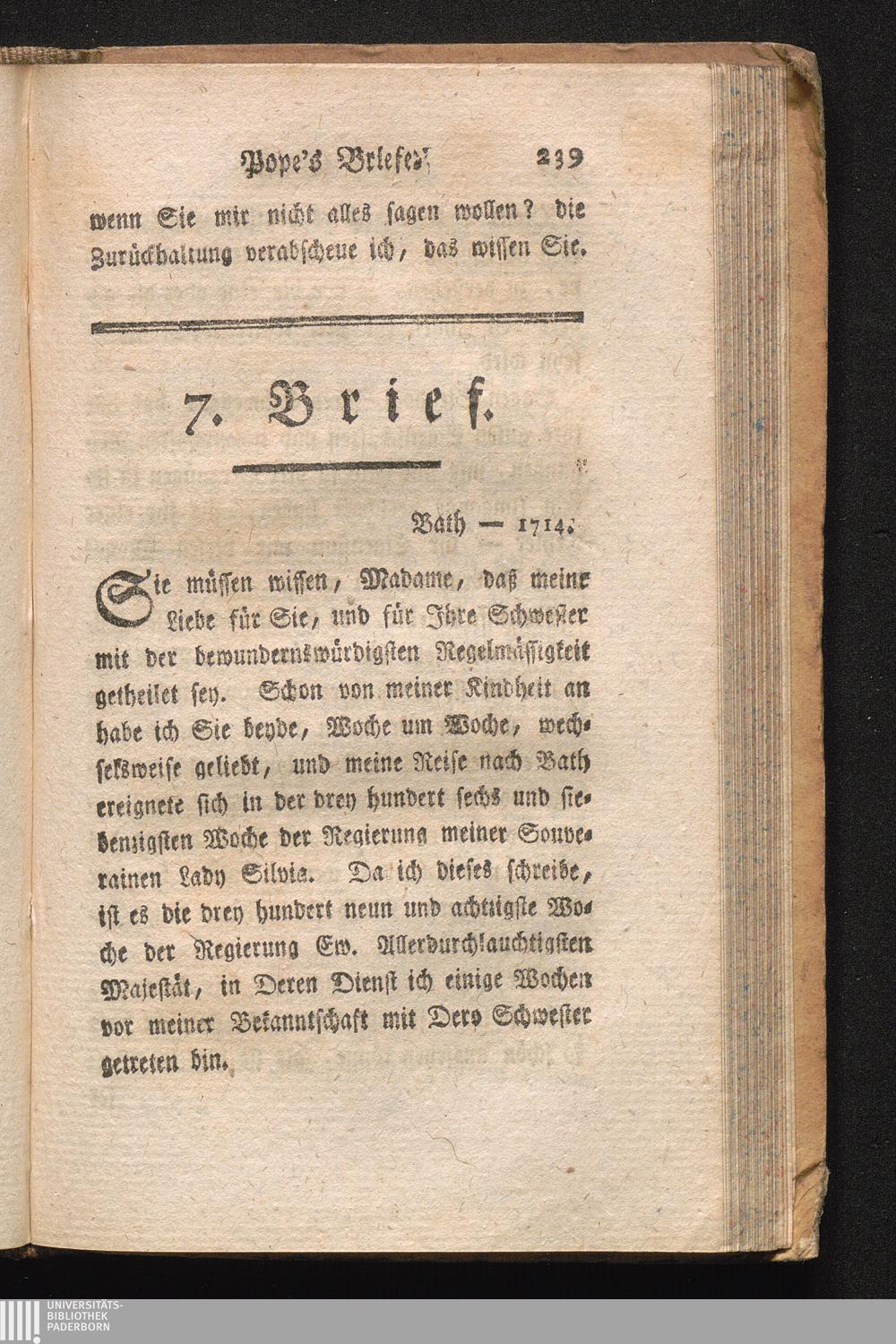 VII. An eine Dame von Bath.