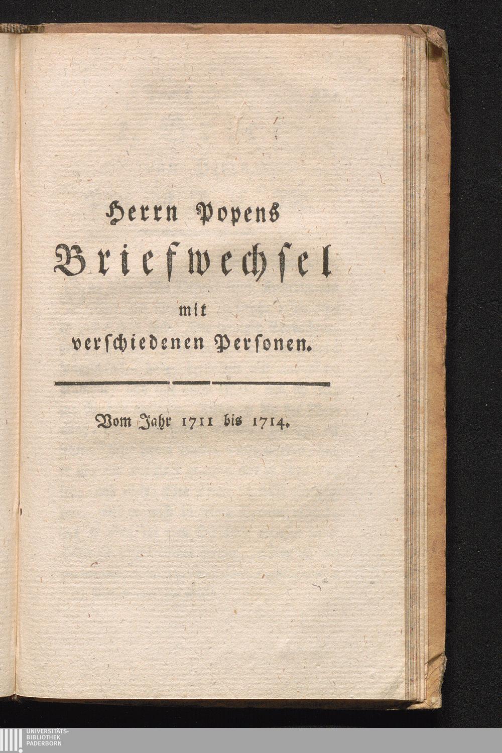 Briefe an und von verschiedenen Personen, von 1711, bis 1714.