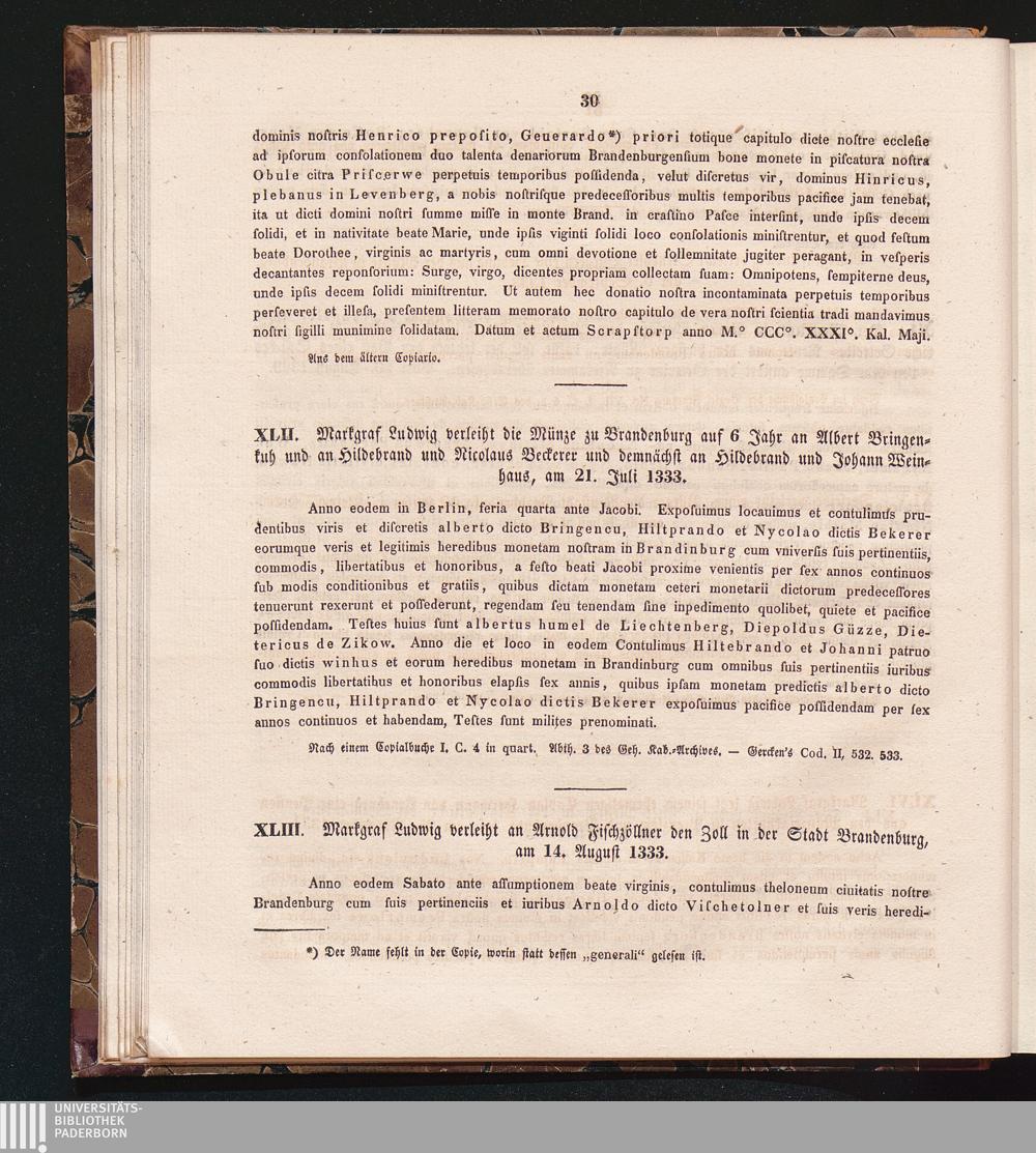 XLIII. Markgraf Ludwig verleiht an Arnold Fischzöllner den Zoll in der Stadt Brandenburg,[...]