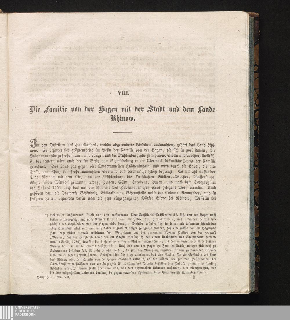 VIII. Die Familie von der Hagen mit der Stadt und dem Lande Rhinow