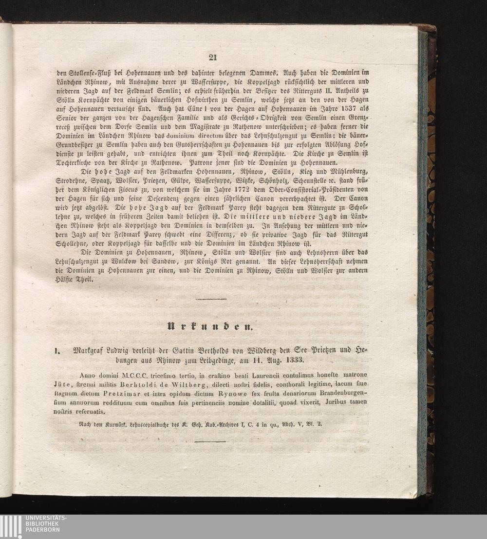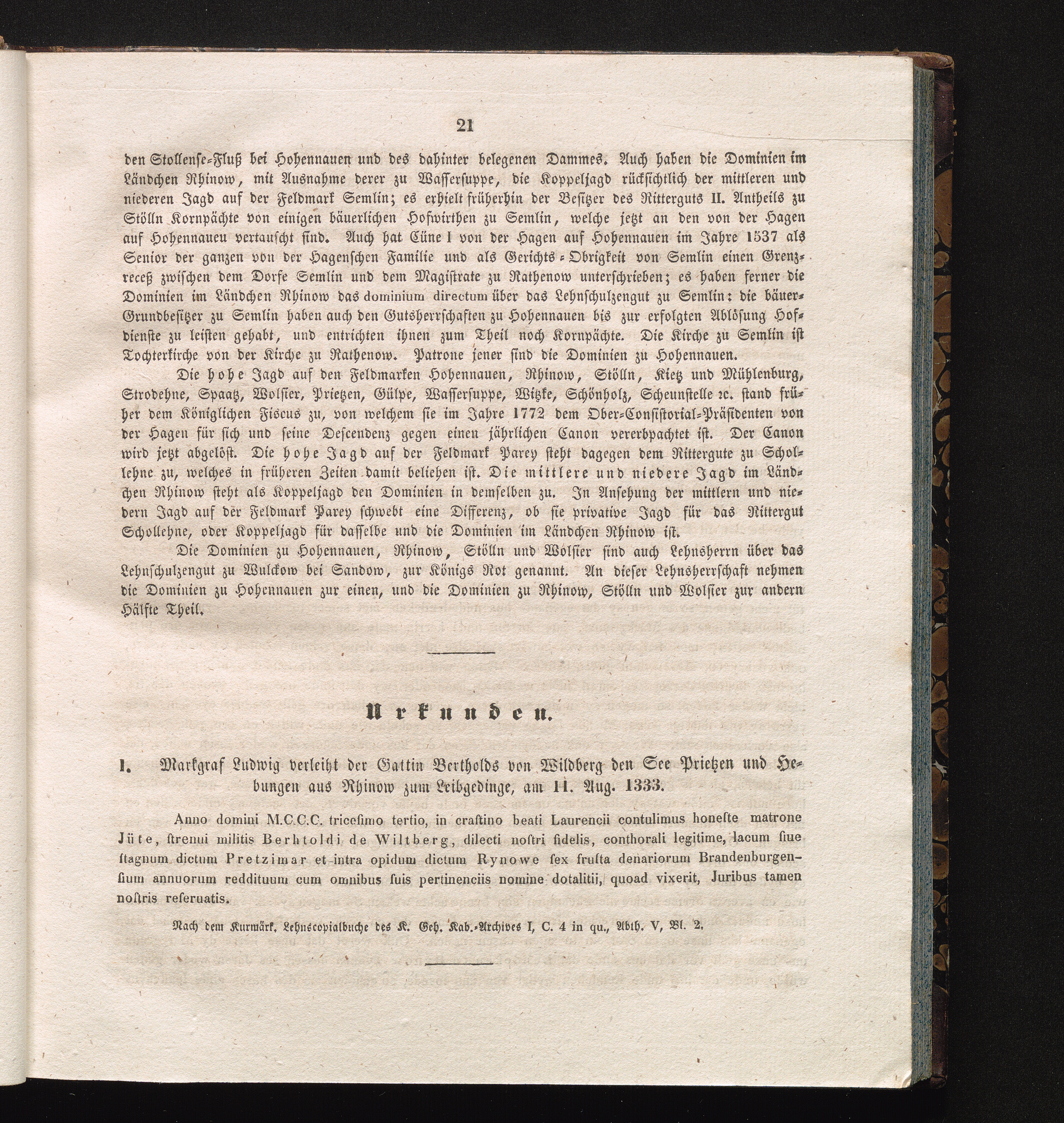 I. Markgraf Ludwig verleiht der Gattin Bertholds von Wildberg den See Prietzen und[...]