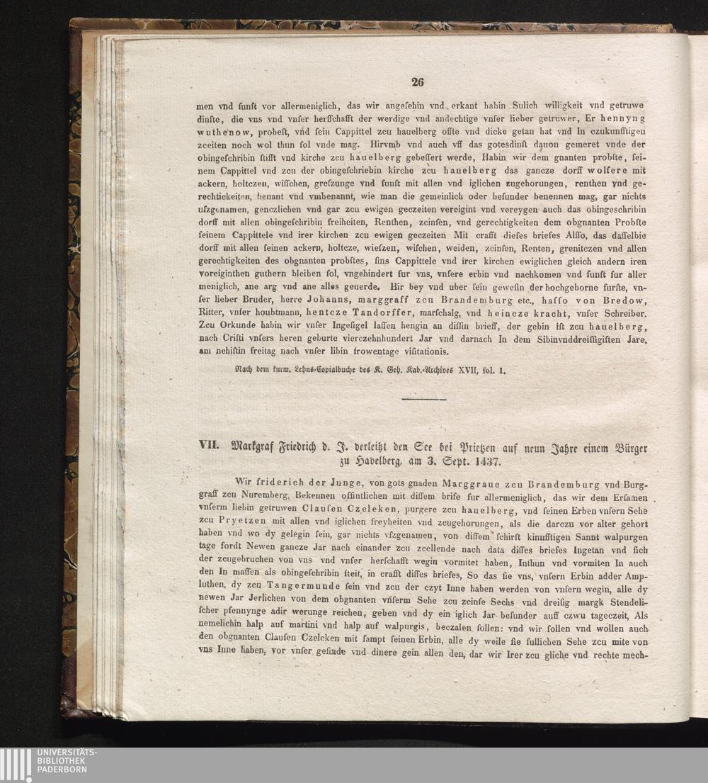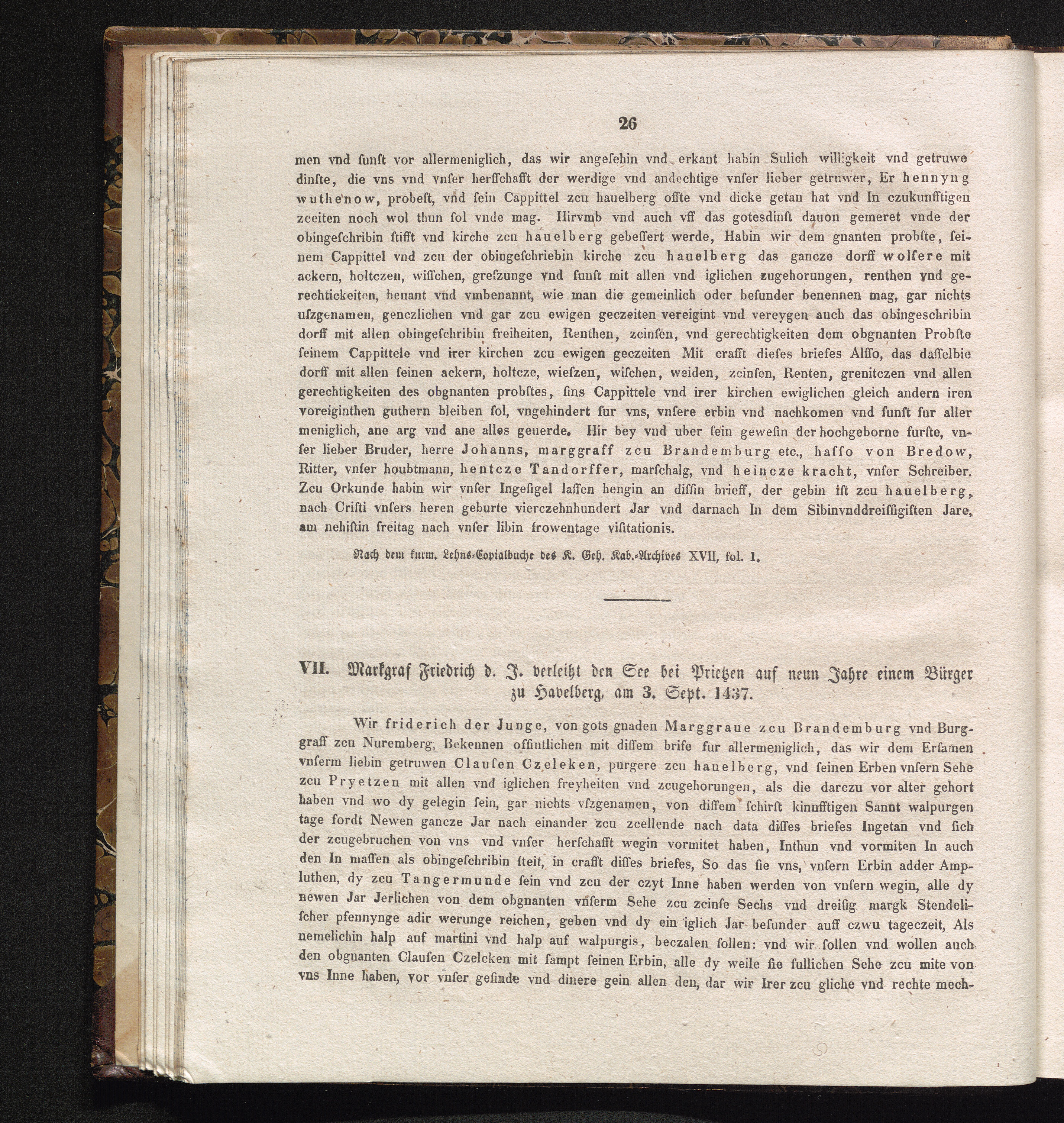 VII. Markgraf Friedrich d. J. verleiht den See bei Prietzen auf neuen Jahre einem[...]
