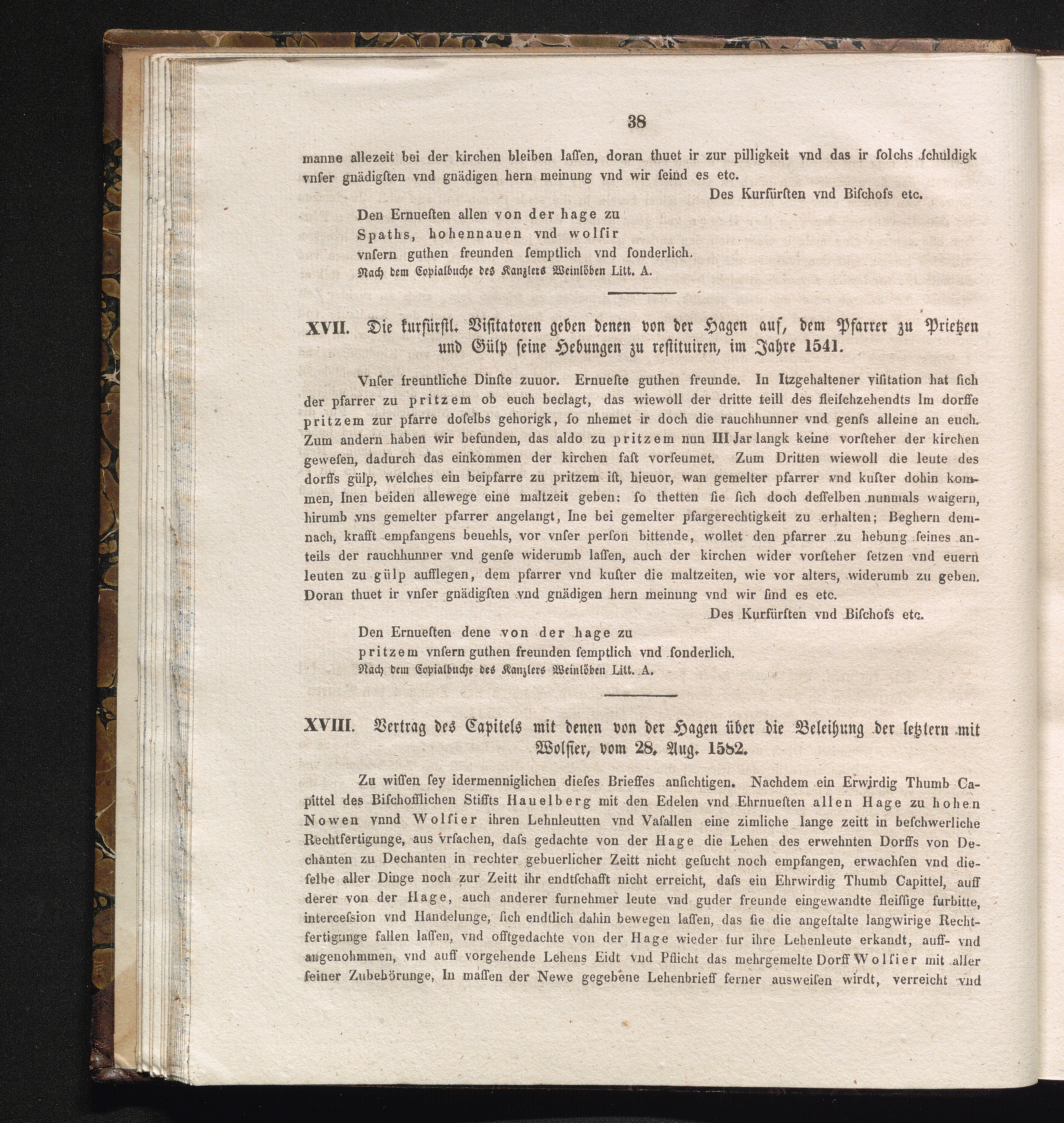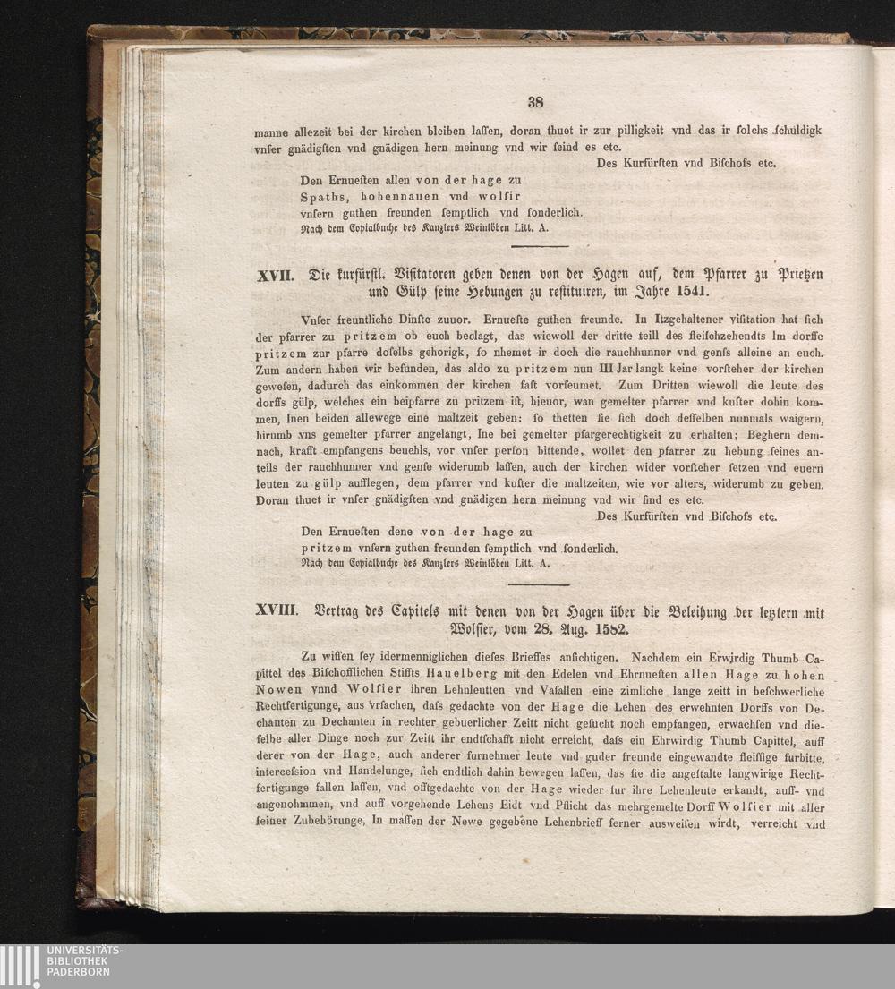 XVIII. Vertrag des Capitels mit denen von der Hagen über die Beleihung der letztern[...]