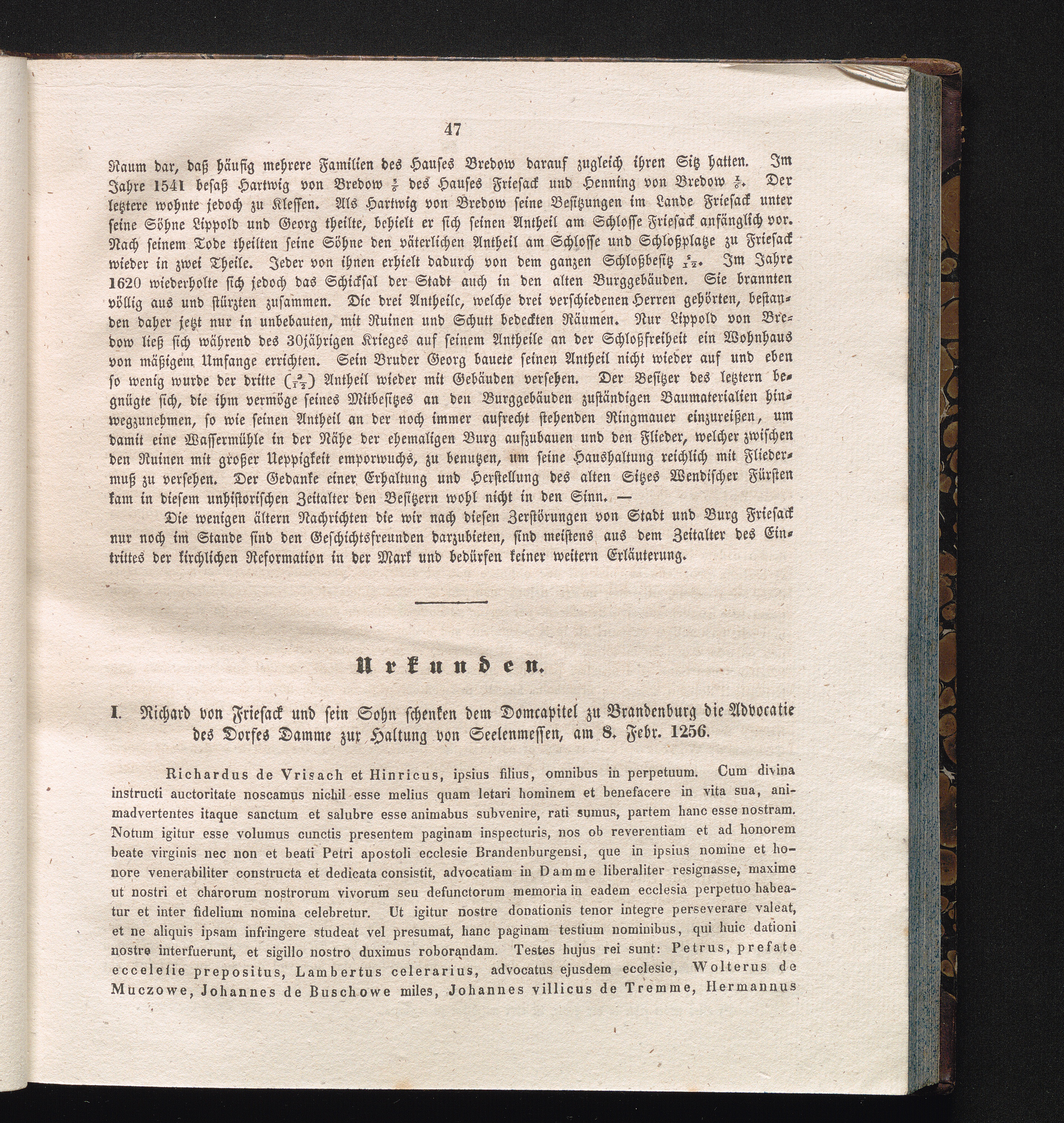 I. Richard von von Friesack und sein Sohn schenken dem Domcapitel zu Brandenburg[...]