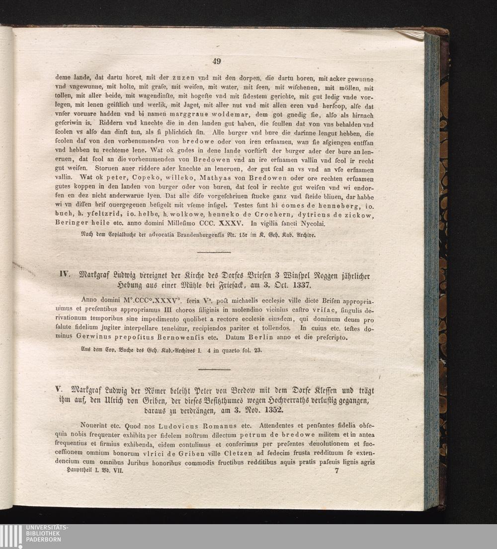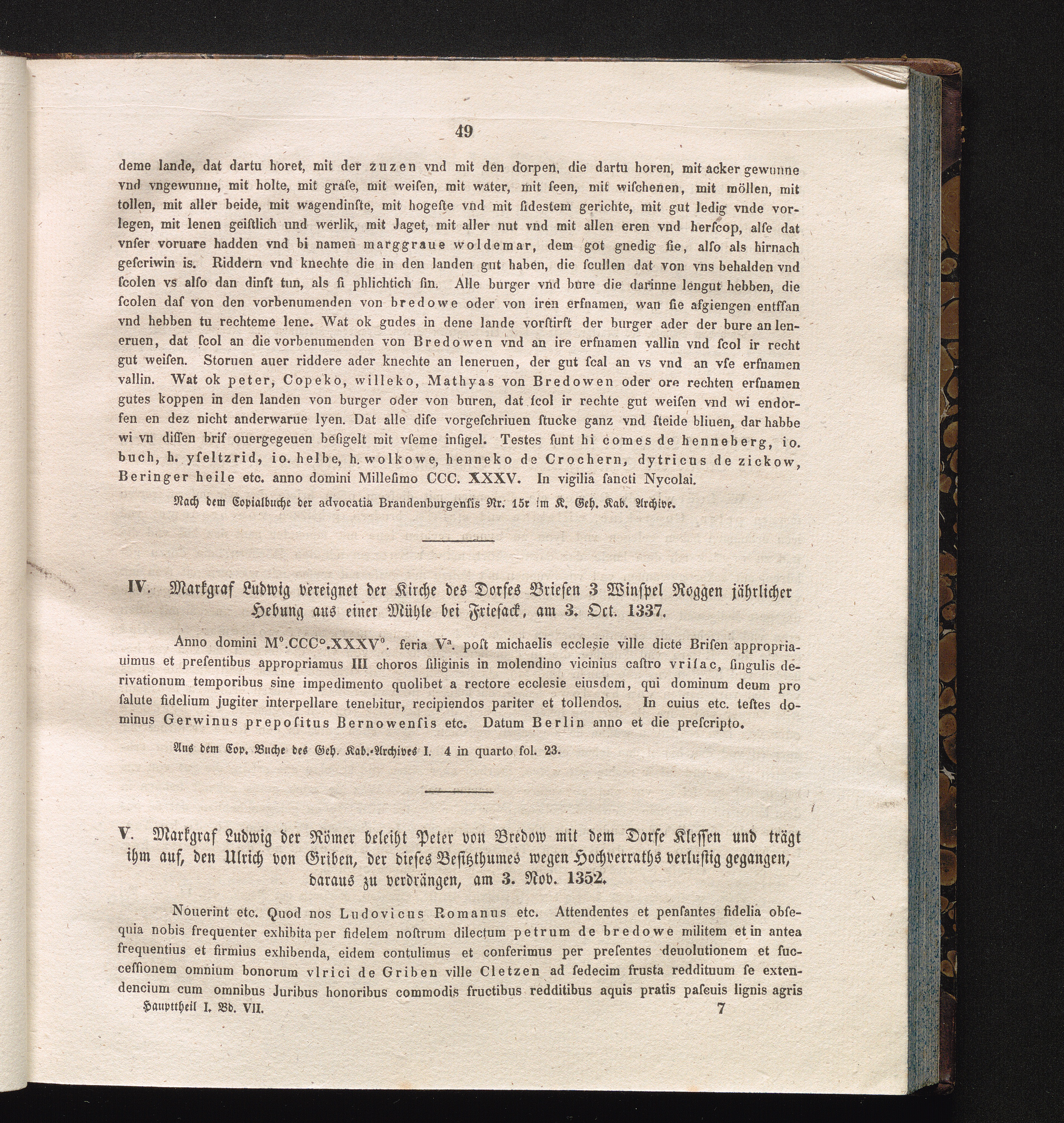 V. Markgraf Ludwig der Römer beleiht Peter von Bredow mit dem Dorfe Klessen und trägt[...]