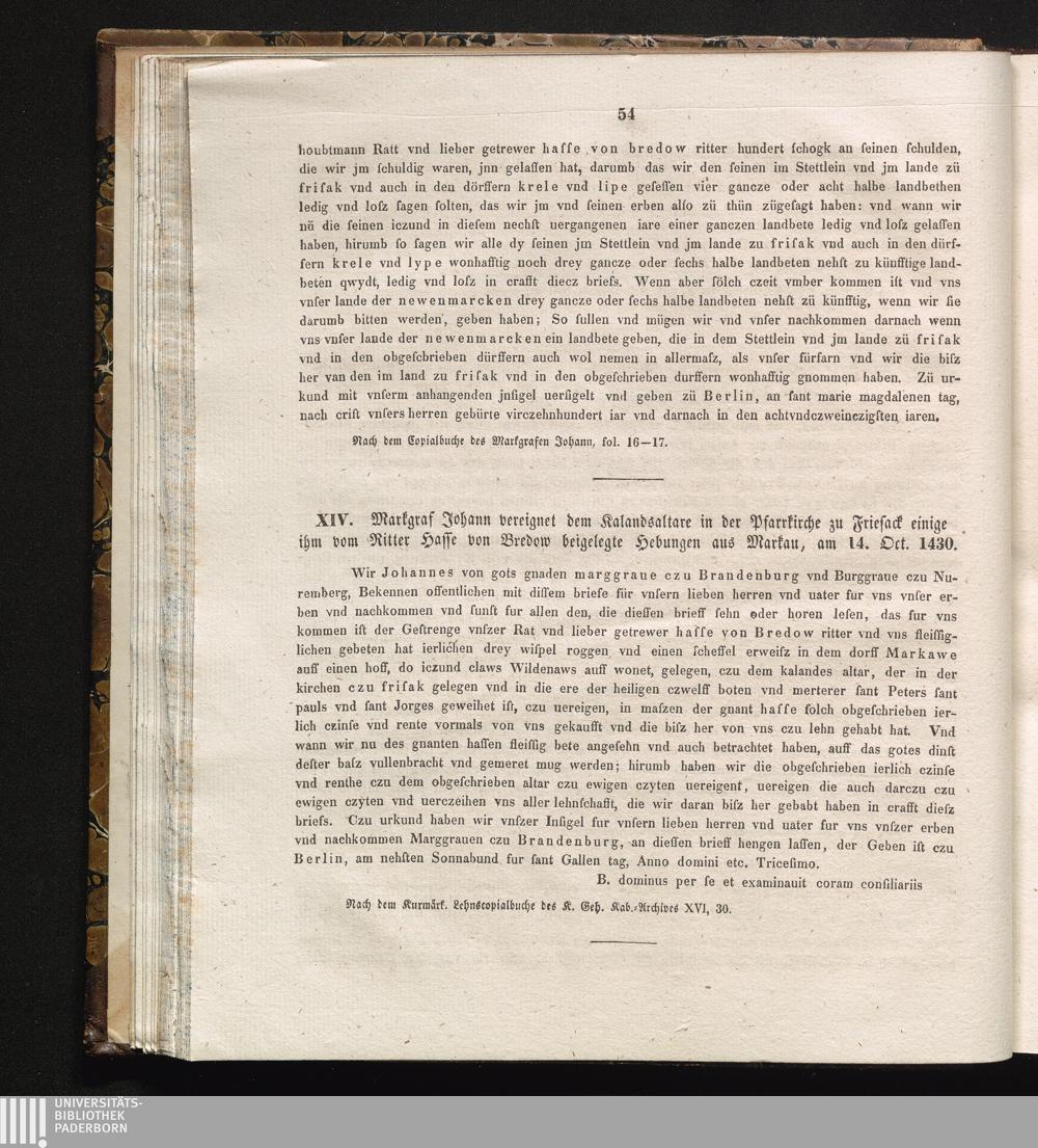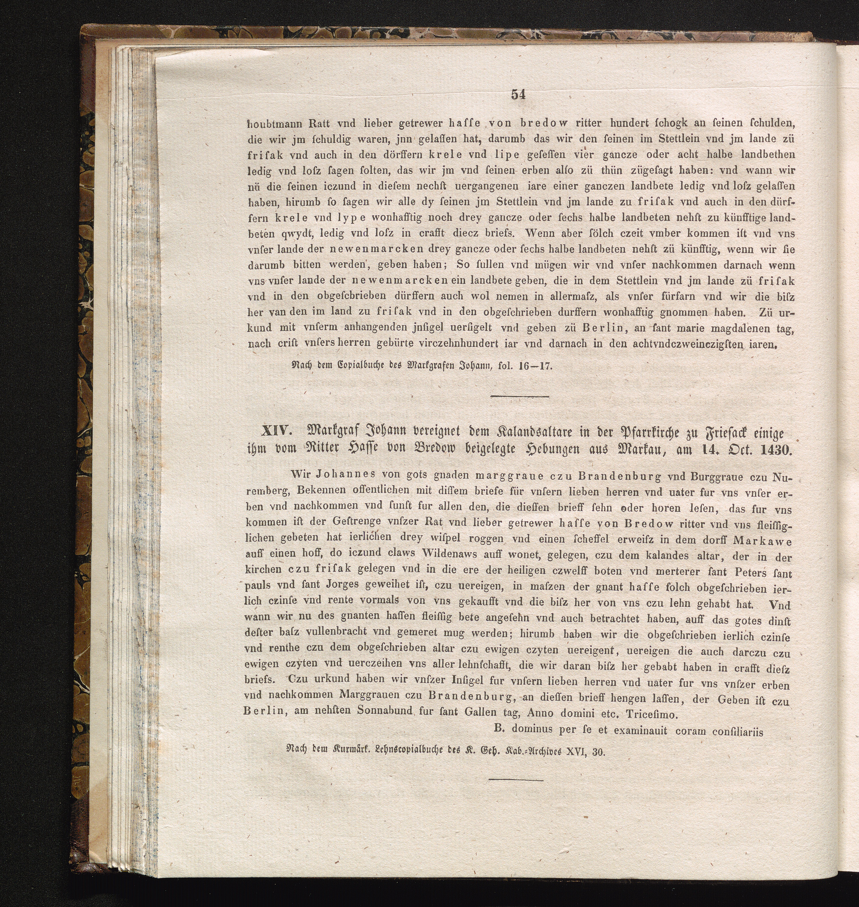 XIV. Markgraf Johann vereignet dem Kalandsaltare in der Pfarrkirche zu Friesack einige[...]