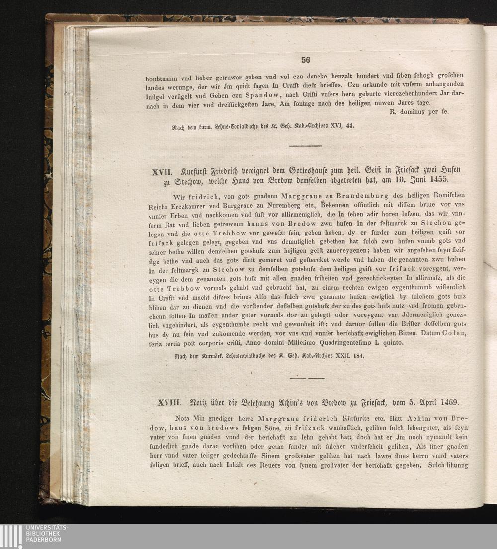 XVIII. Notiz über die Belehnung Achim's von Bredow zu Friesack, vom 5. April 146[...]