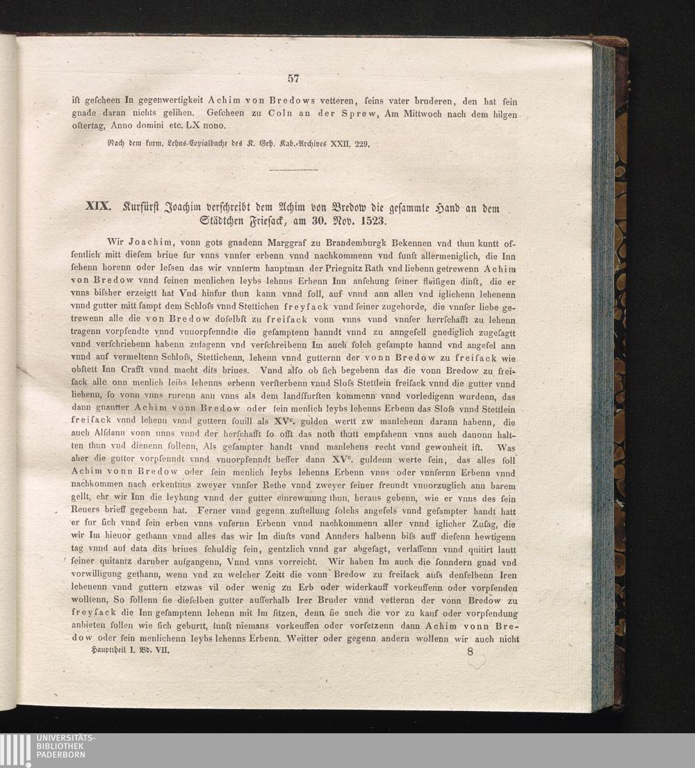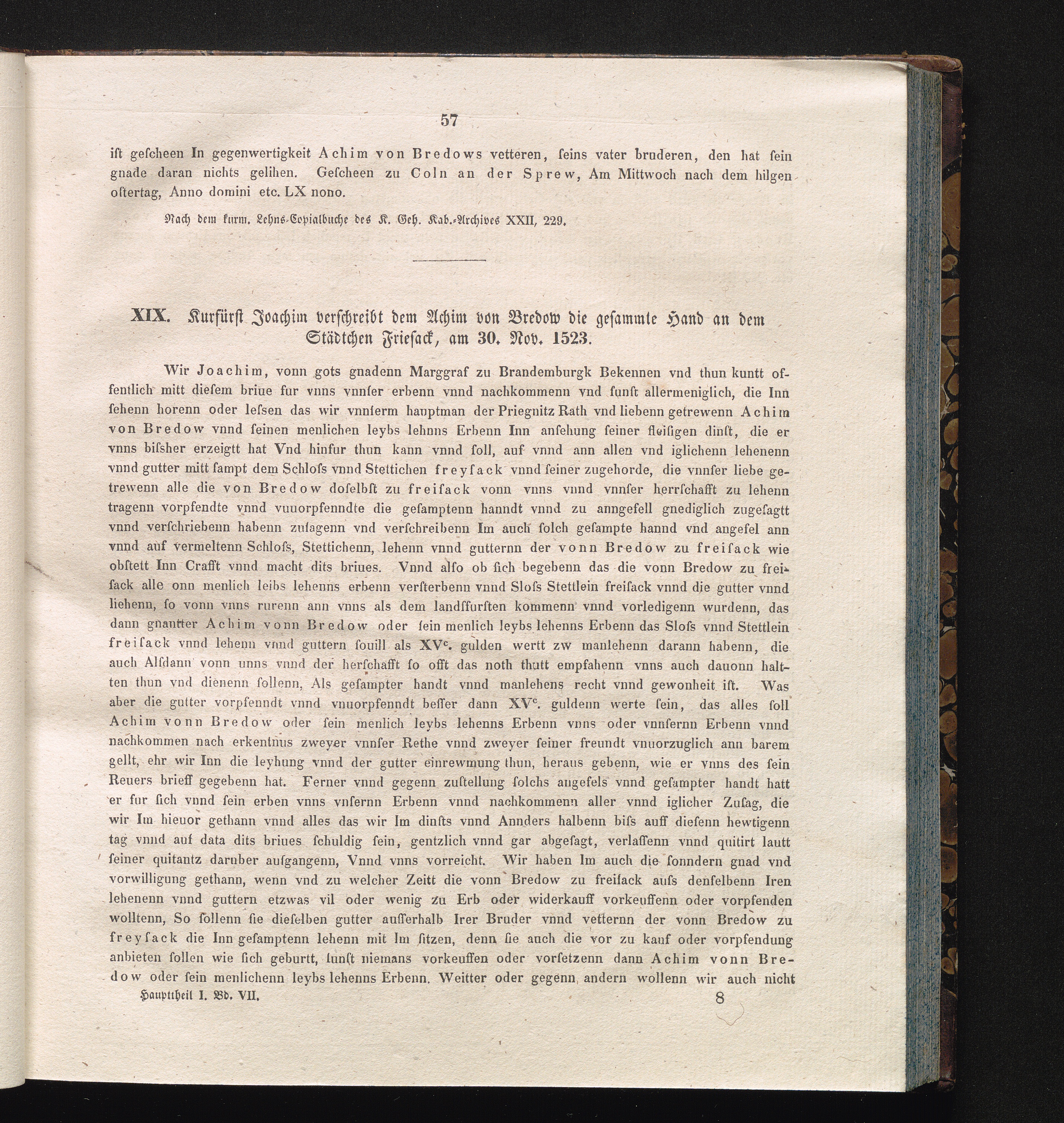 XIX. Kurfürst Joachim verschreibt dem Achim von Bredow die gesammte Hand an dem Städtchen[...]