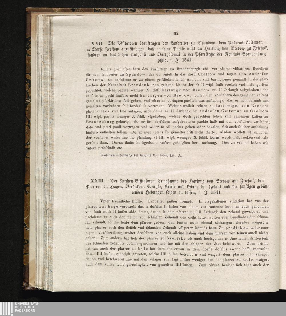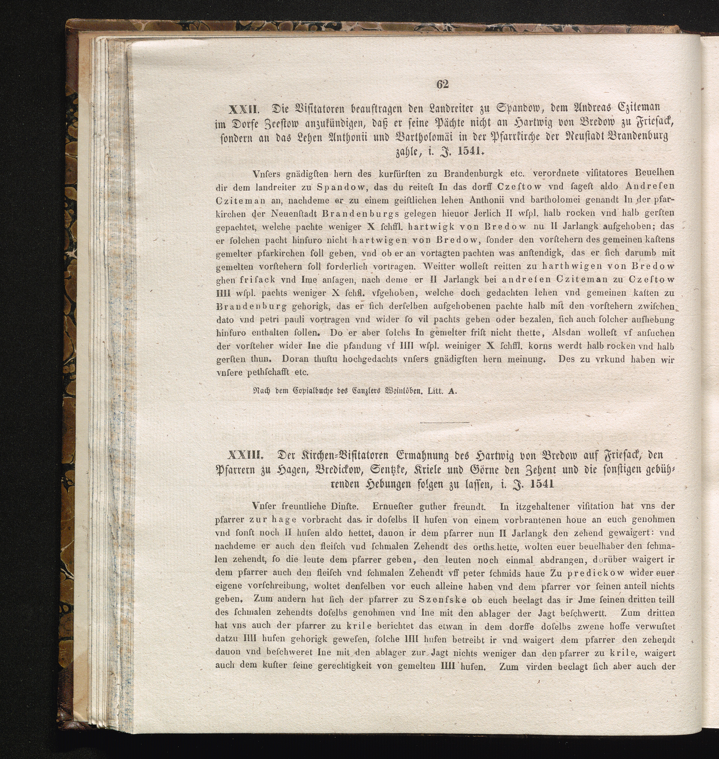 XXIII. Der Kirchen-Visitatoren Ermahnung des Hartwig von Bredow auf Friesack, den[...]