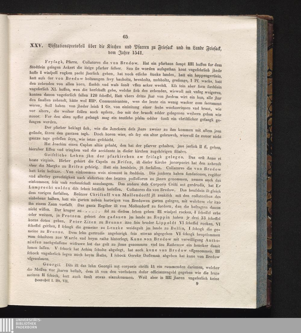 XXV. Visitationsprotokoll über die Kirchen und Pfarren zu Friesack und im Lande Friesack,[...]