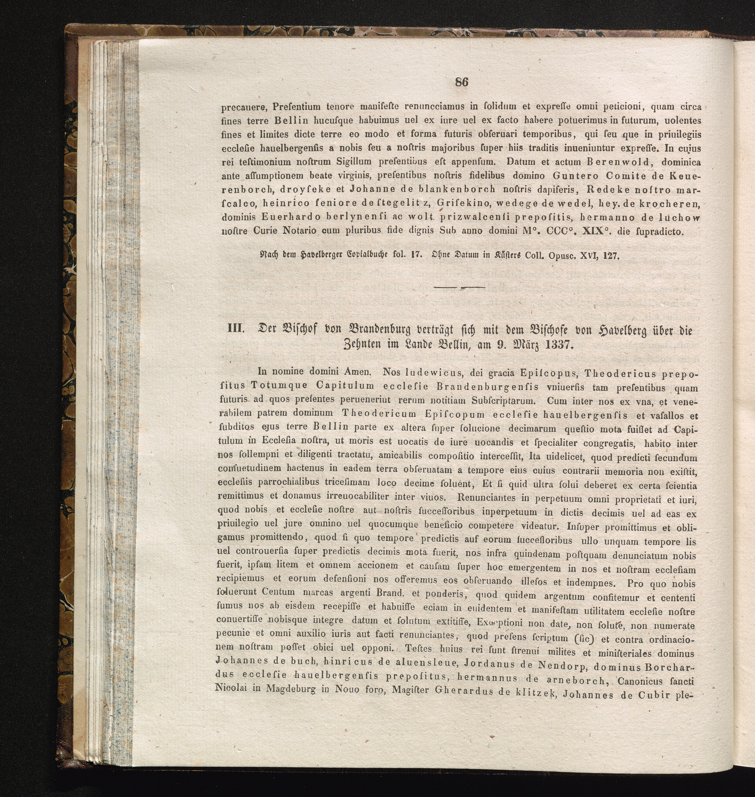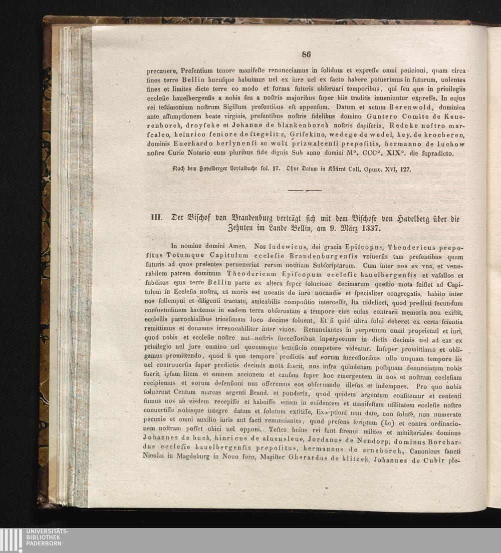III. Der Bischof von Brandenburg verträgt sich mit dem Bischofe von Havelberg über[...]