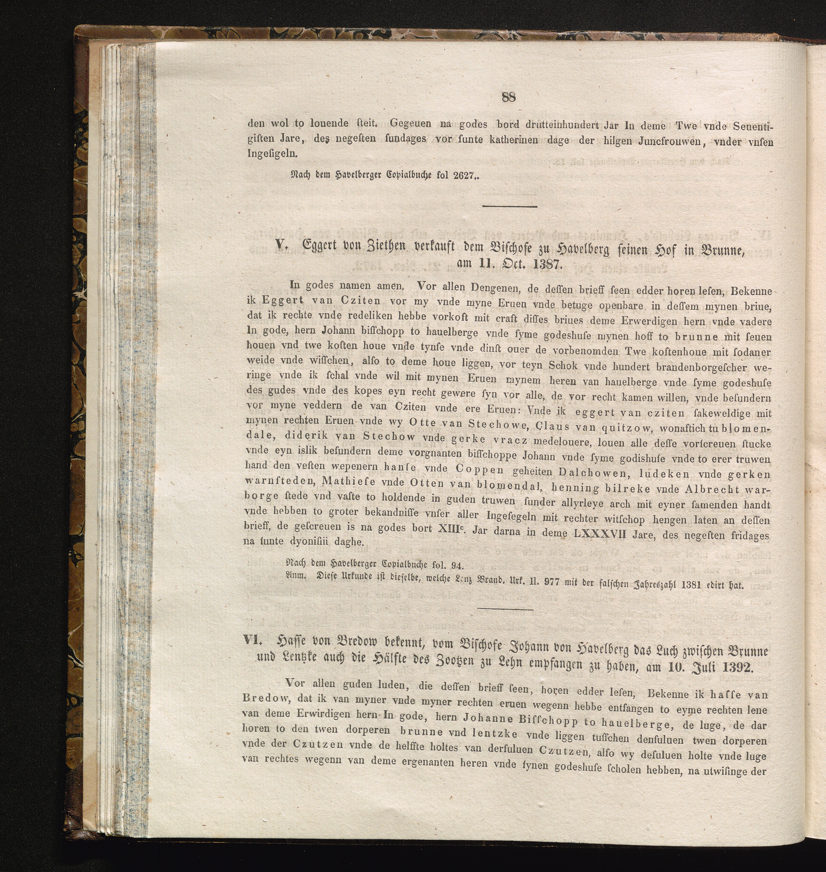 VI. Hasse von Bredow bekennt, vom Bischofe Johann von Havelberg das Luch zwischen[...]