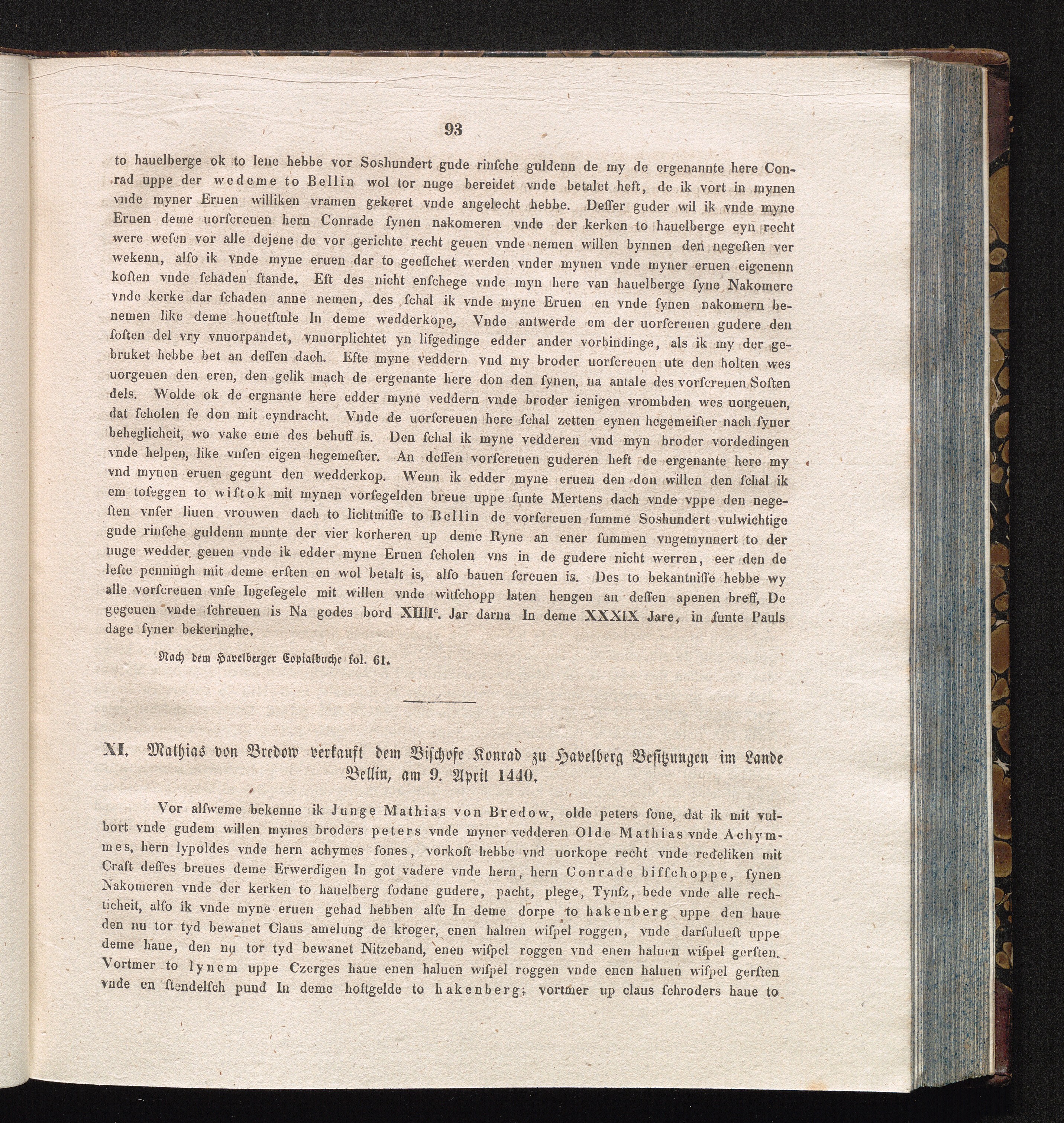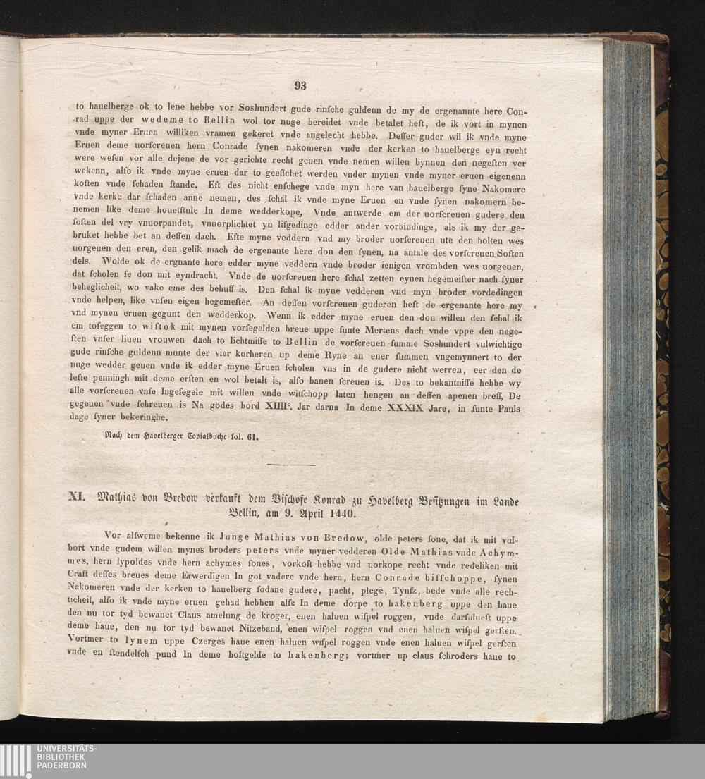 XI. Mathias von Bredow verkauft dem Bischofe Konrad zu Havelberg Besitzungen im Lande[...]