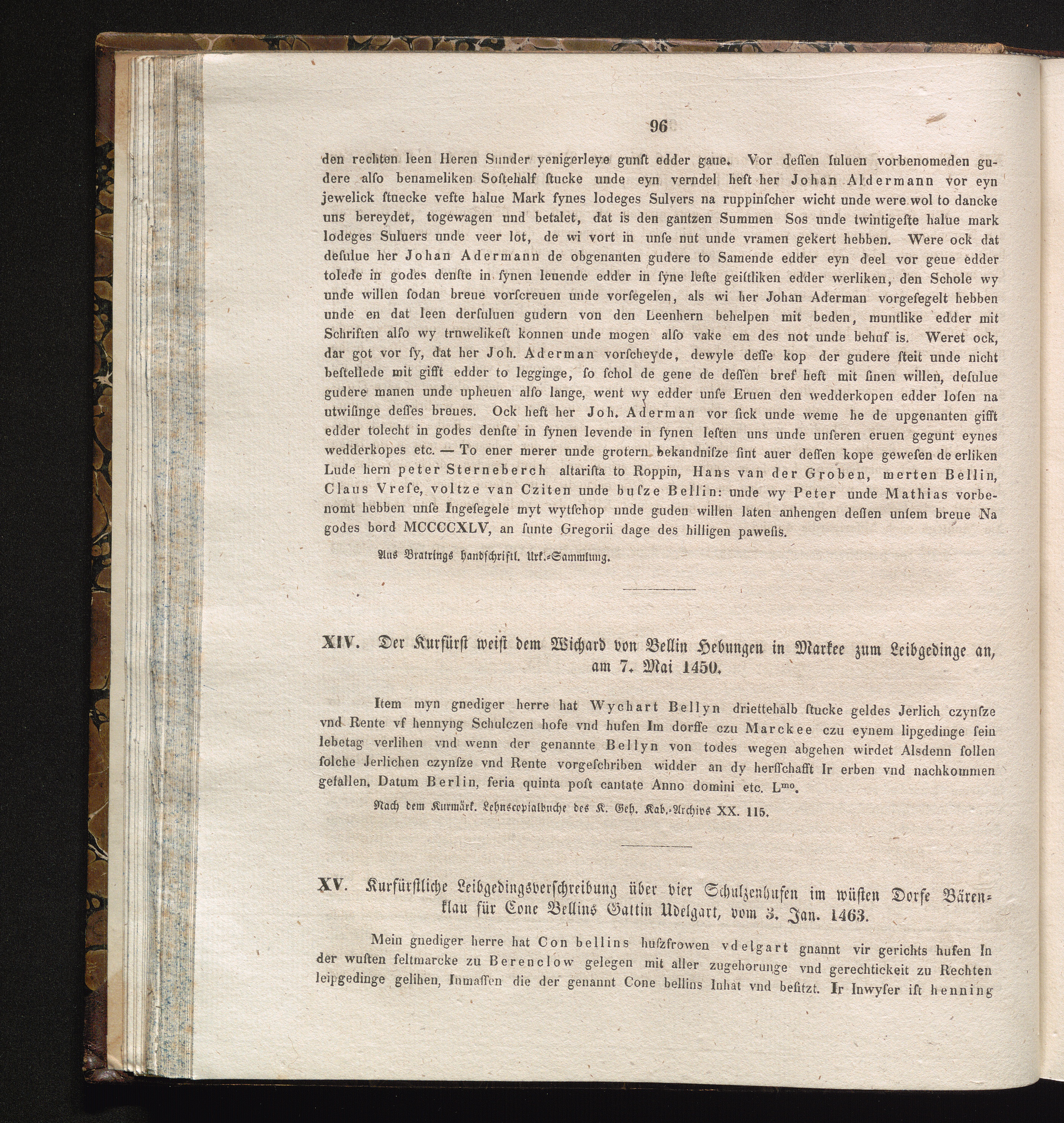 XV. Kurfürstliche Leibgedingsverschreibung über vier Schulzenhufen im wüsten Dorfe[...]