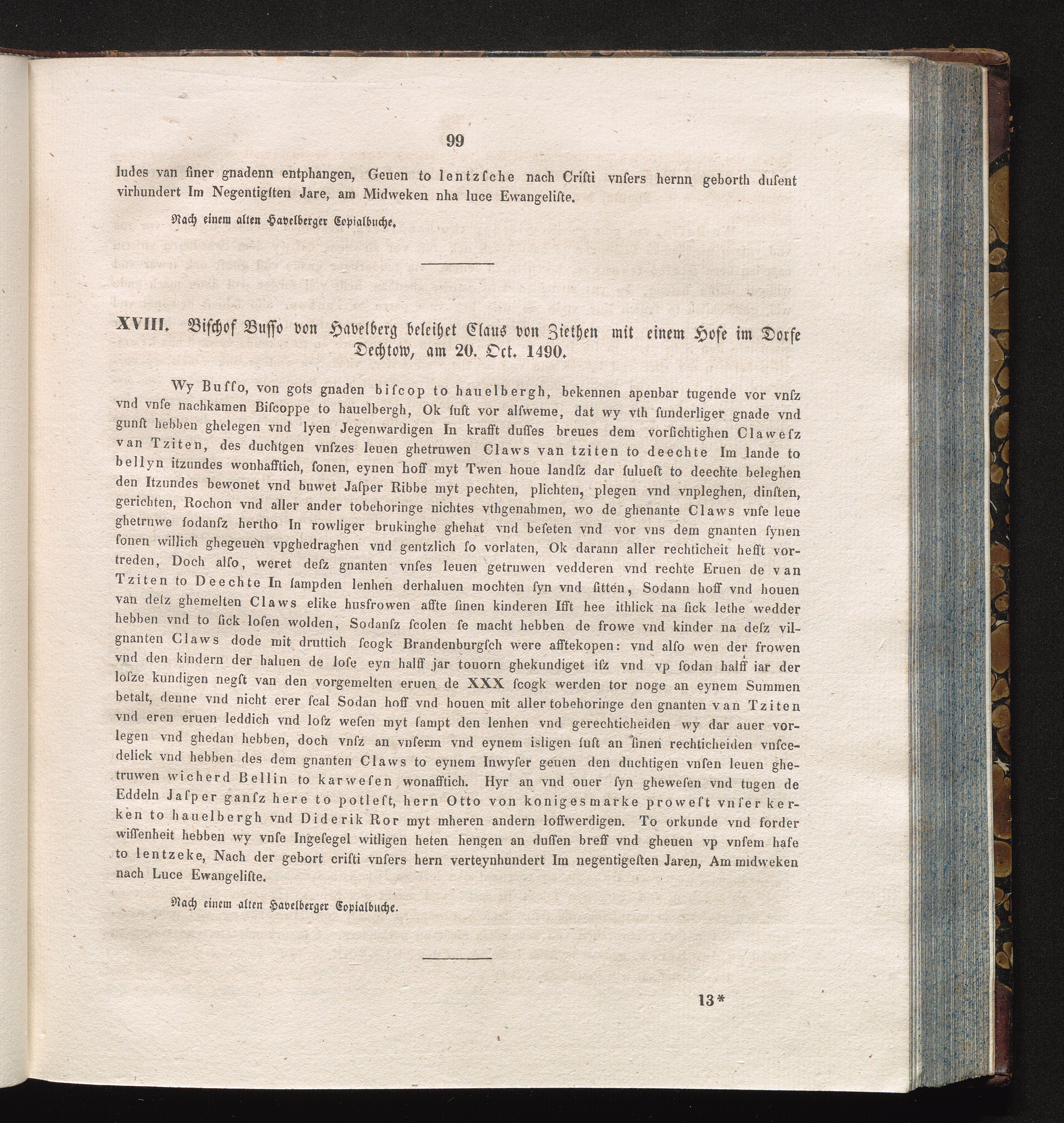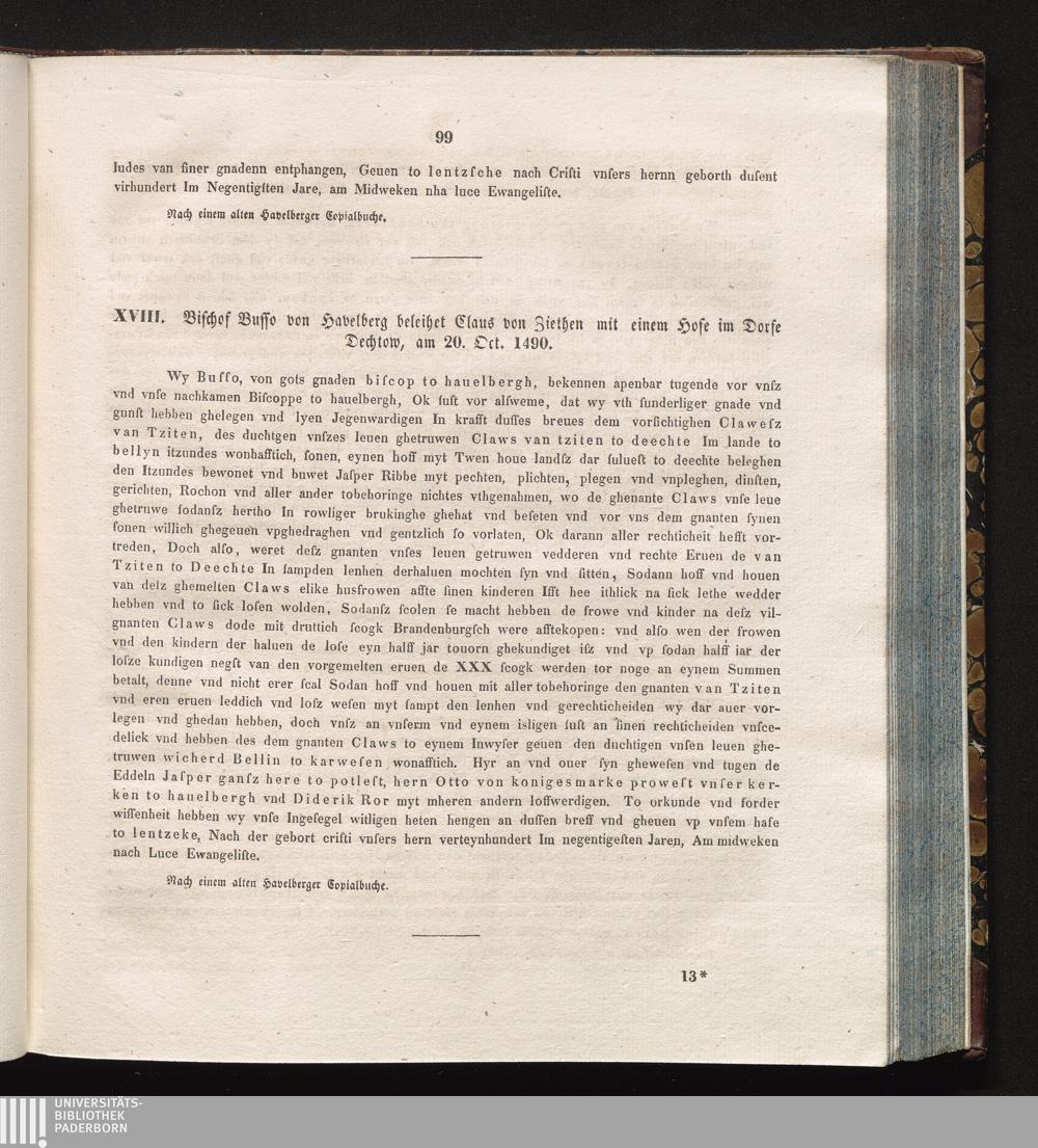 XVIII. Bischof Busso von Havelberg beleihet Claus von Ziethen mit einem Hofe im Dorfe[...]