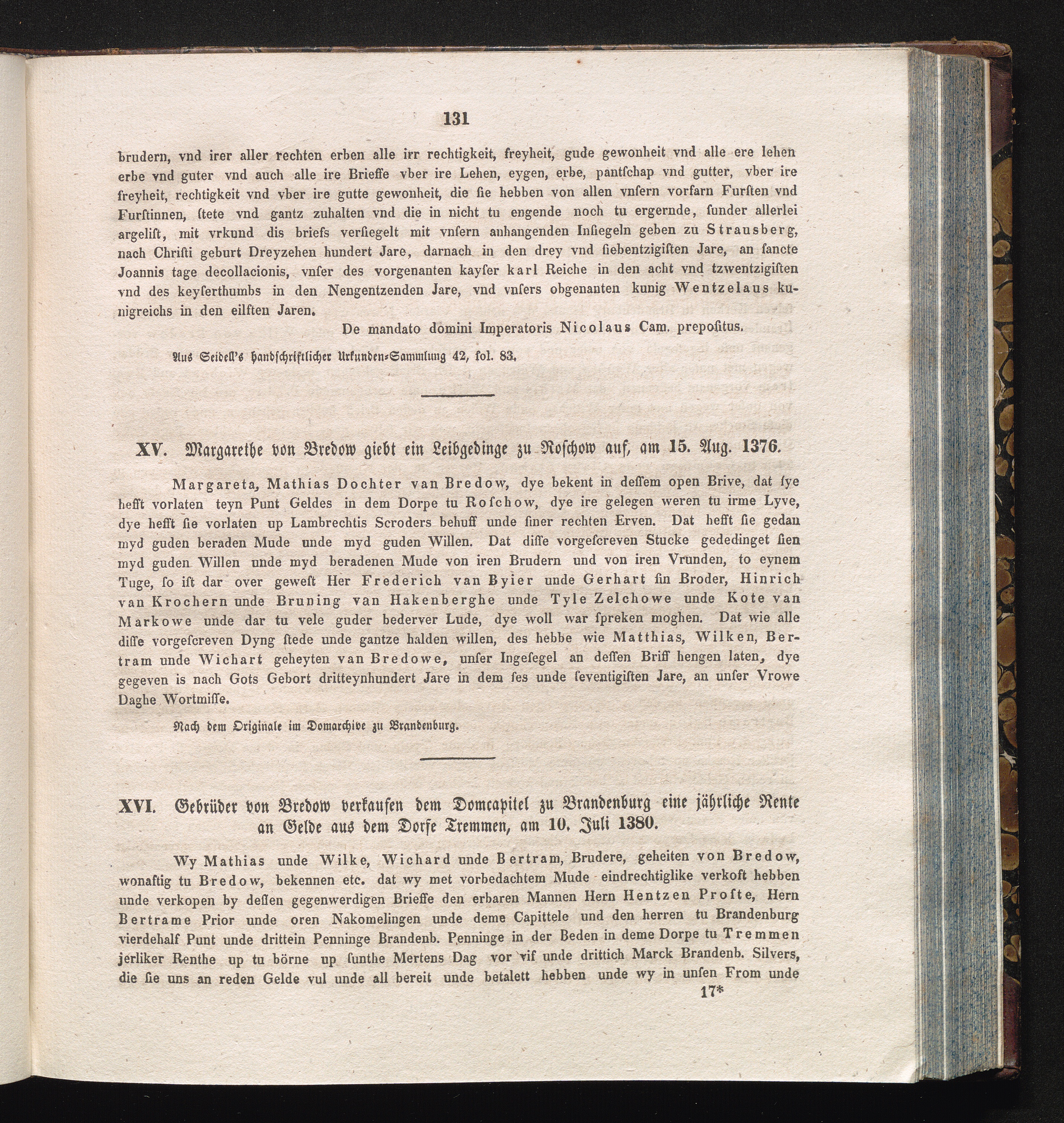 XVI. Gebrüder von Bredow verkaufen dem Domcapitel zu Brandenburg eine jährliche Rente[...]