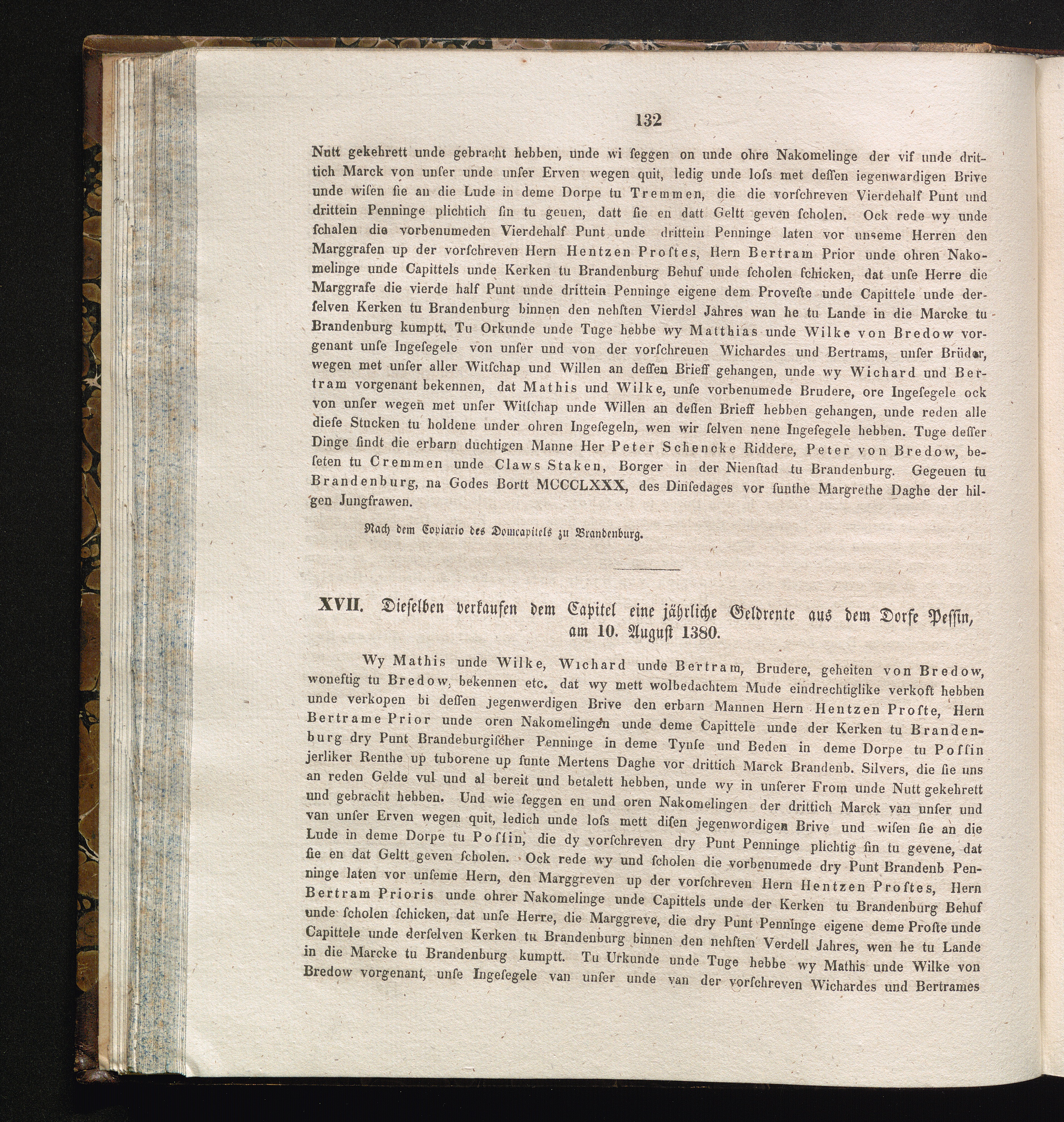 XVII. Dieselben verkaufen dem Capitel eine jährliche Geldrente aus dem Dorfe Pessin,[...]