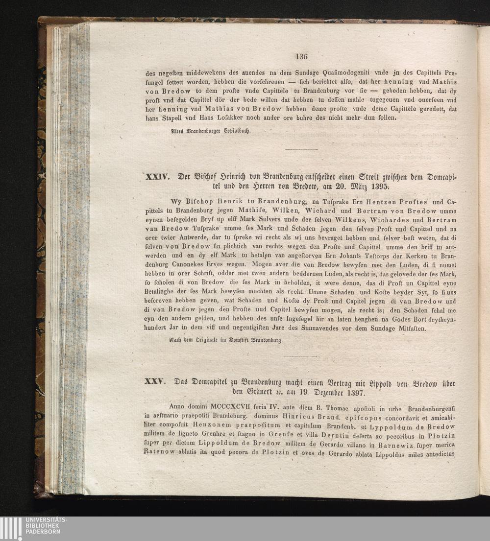 XXV. Das Domcapitel zu Brandenburg macht einen Vertrag mit Lippold von Bredow über[...]