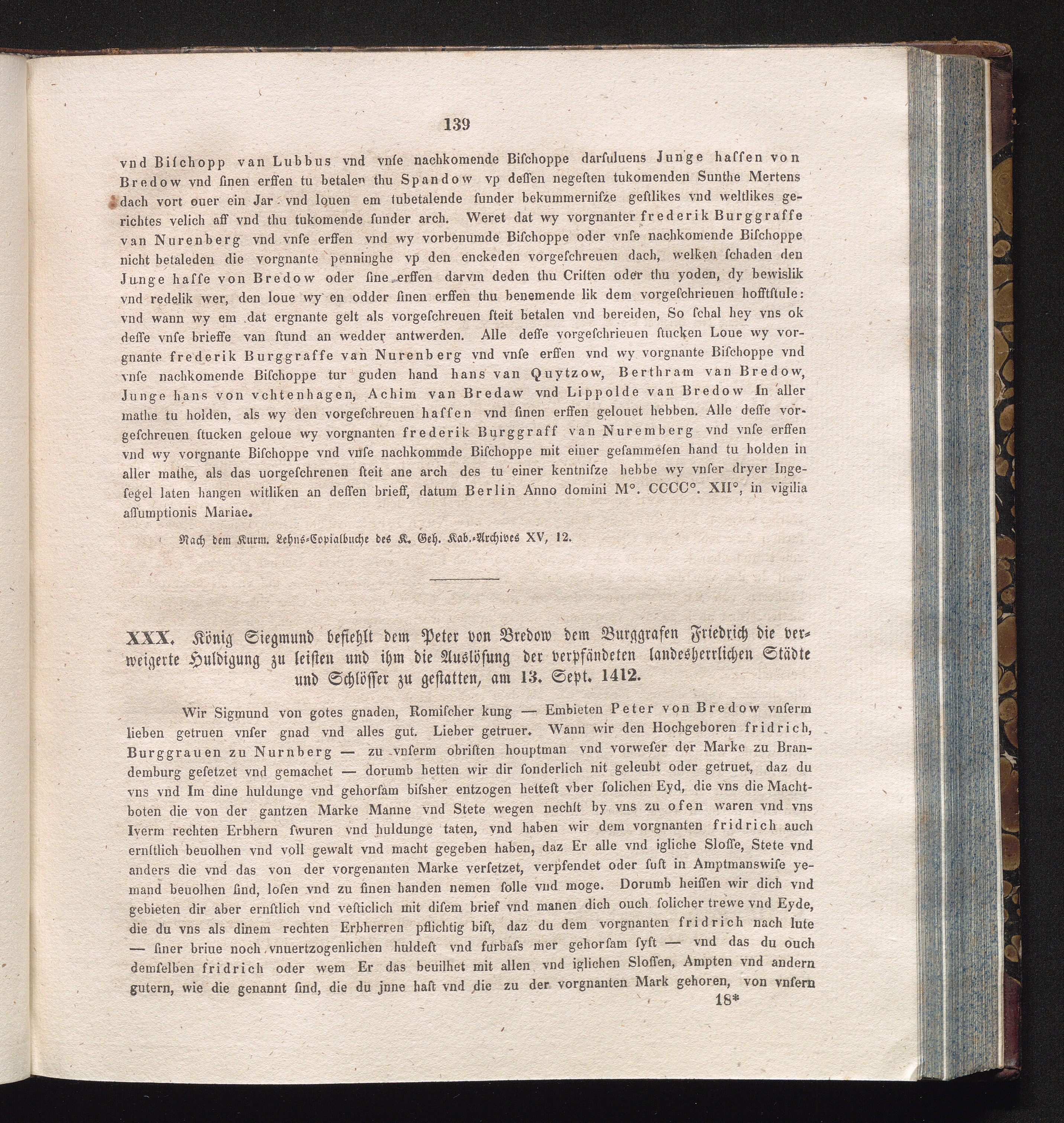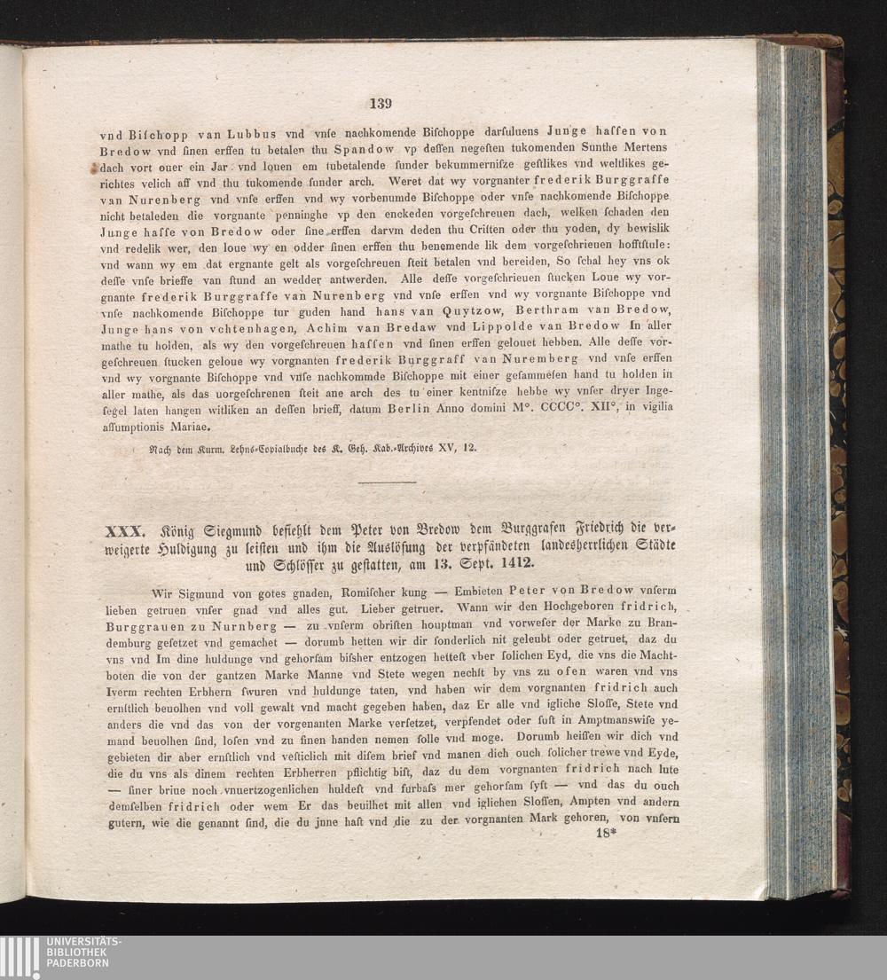 XXX. König Siegmund befiehlt dem Peter von Bredow dem Burggrafen Friedrich die verweigerte[...]