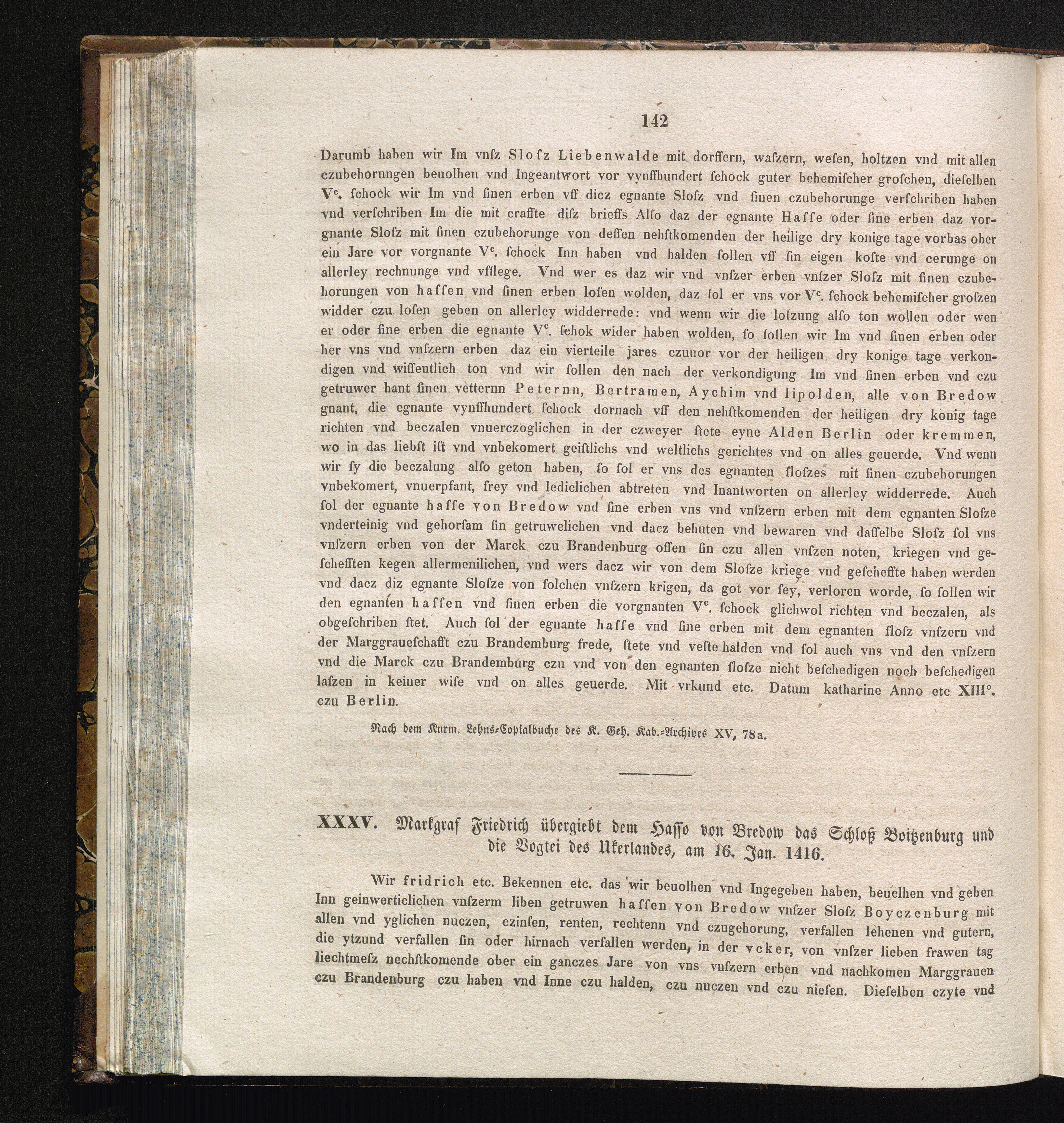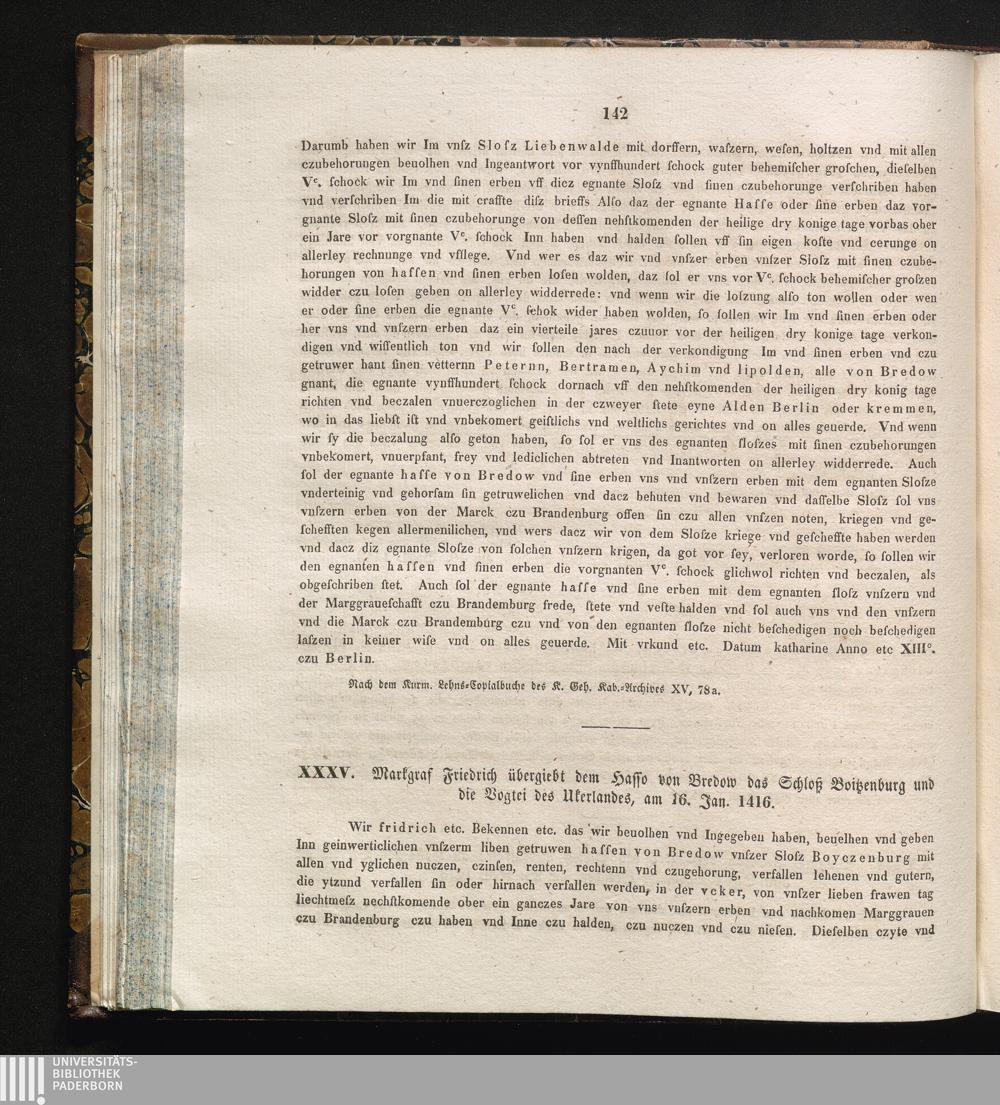 XXXV. Markgraf Friedrich übergiebt dem Hasso von Bredow das Schloß und die Vogtei[...]