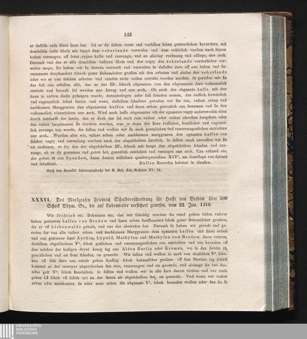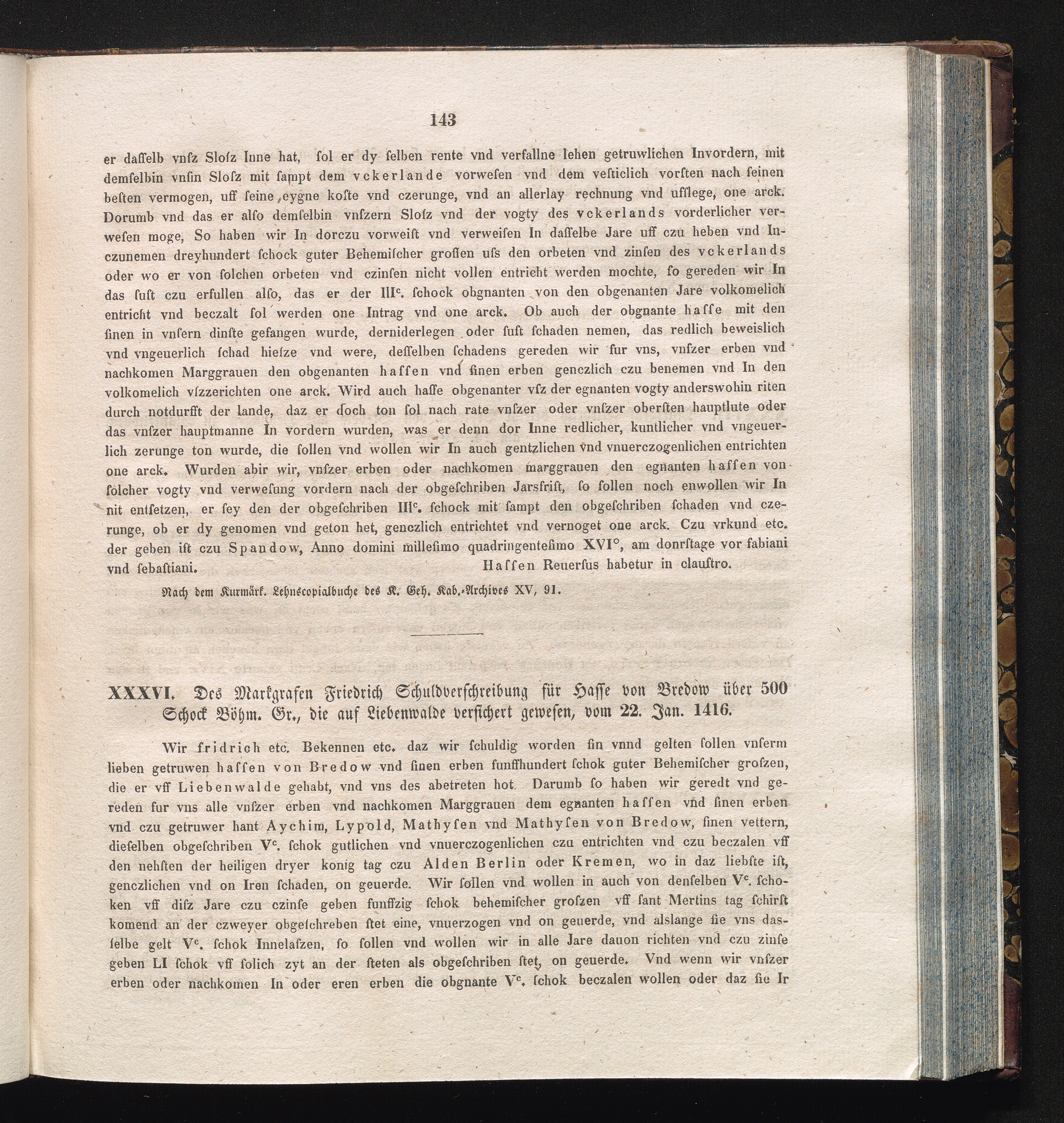 XXXVI. Des Markgrafen Friedrich Schuldverschreibung für Hasse von Bredow über 500[...]