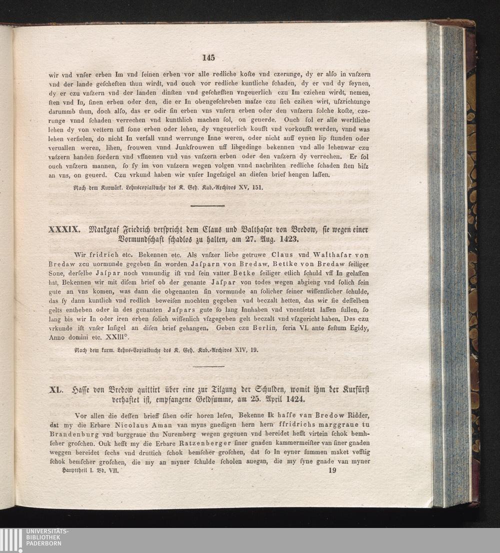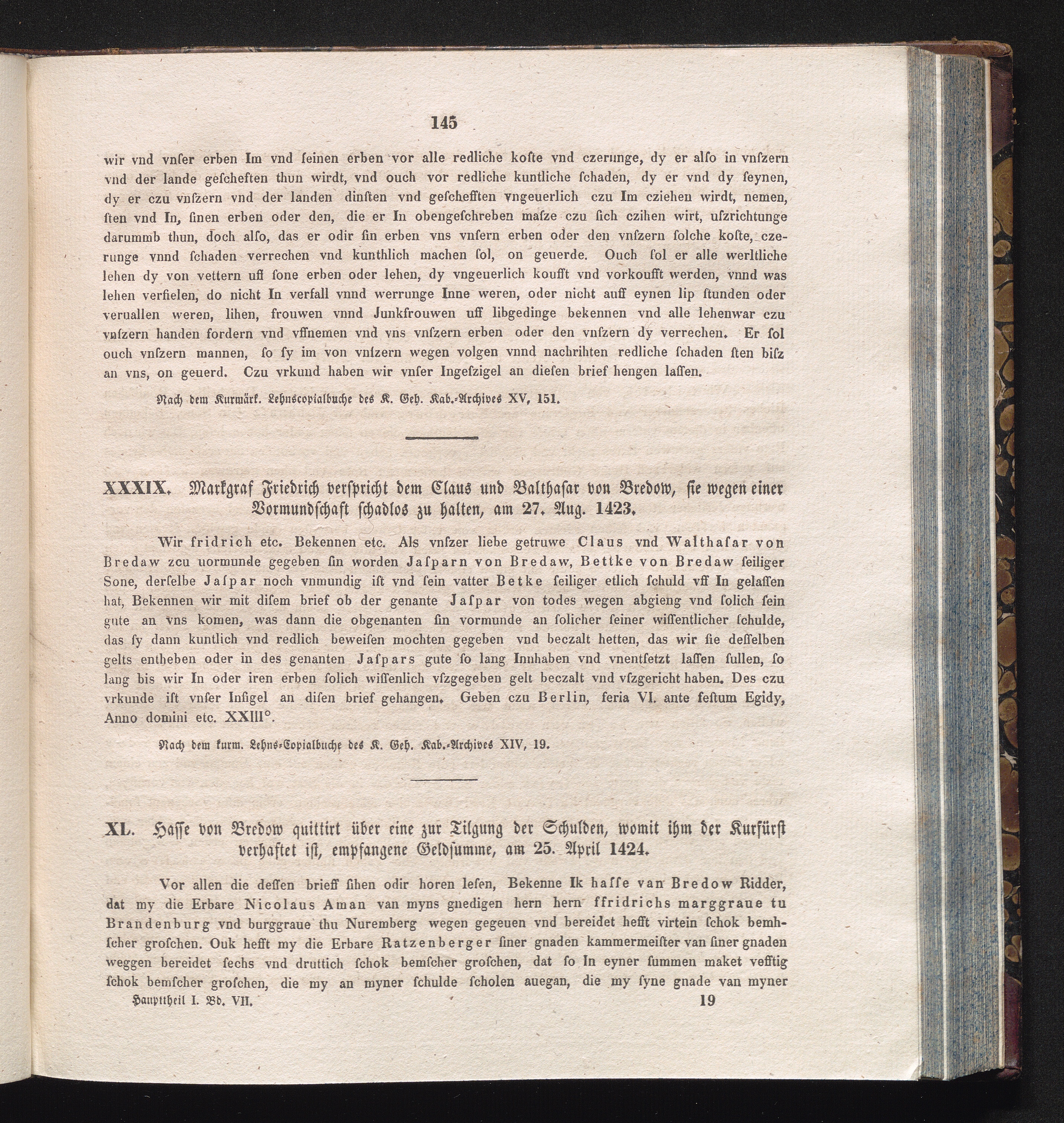 XL. Hasse von Bredow quittirt über eine zur Tilgung der Schulden, womit ihm der Kurfürst[...]