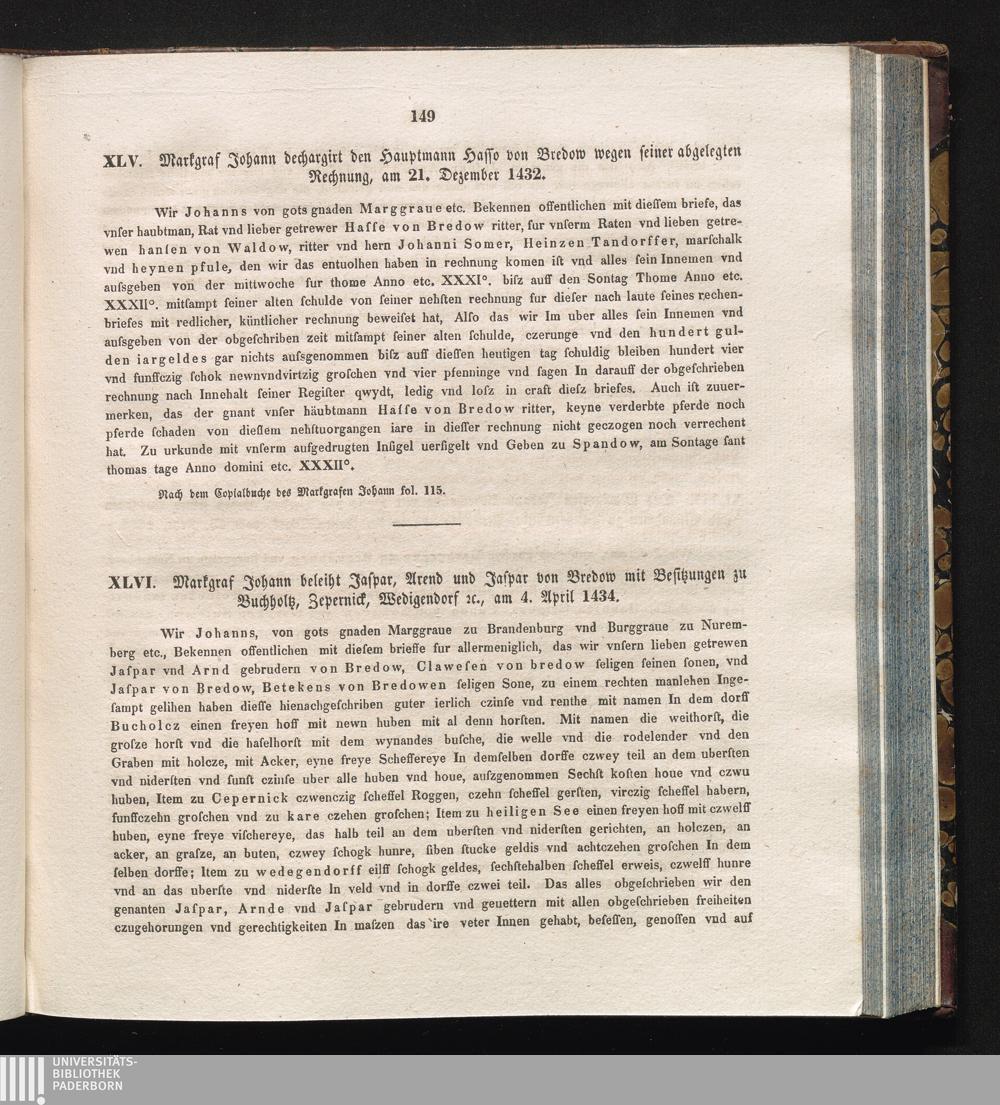 XLVI. Markgraf Johann beleiht Jaspar, Arend und Jaspar von Bredow mit Besitzungen[...]