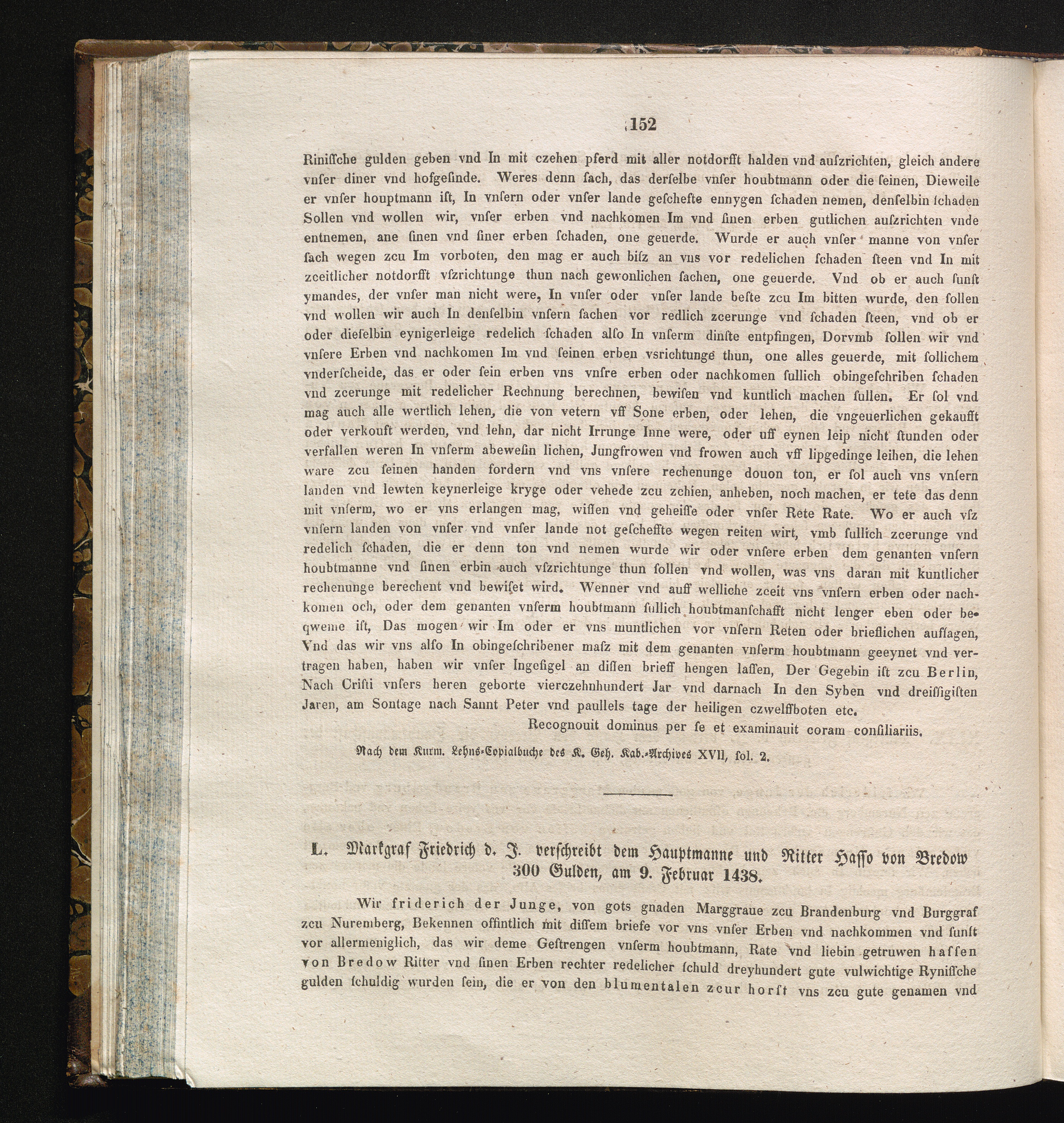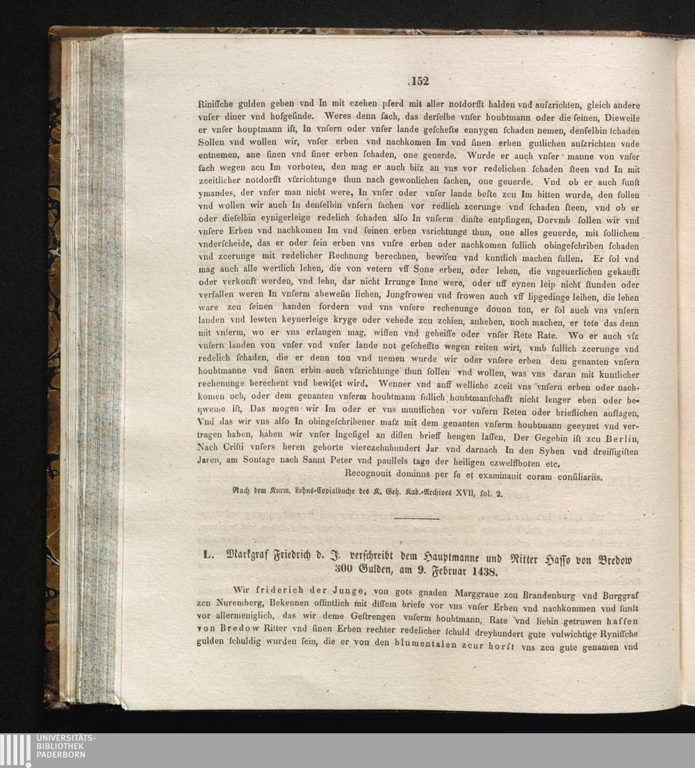 L. Markgraf Friedrich d. J. verschreibt dem Hauptmanne und Ritter Hasso von Bredow[...]