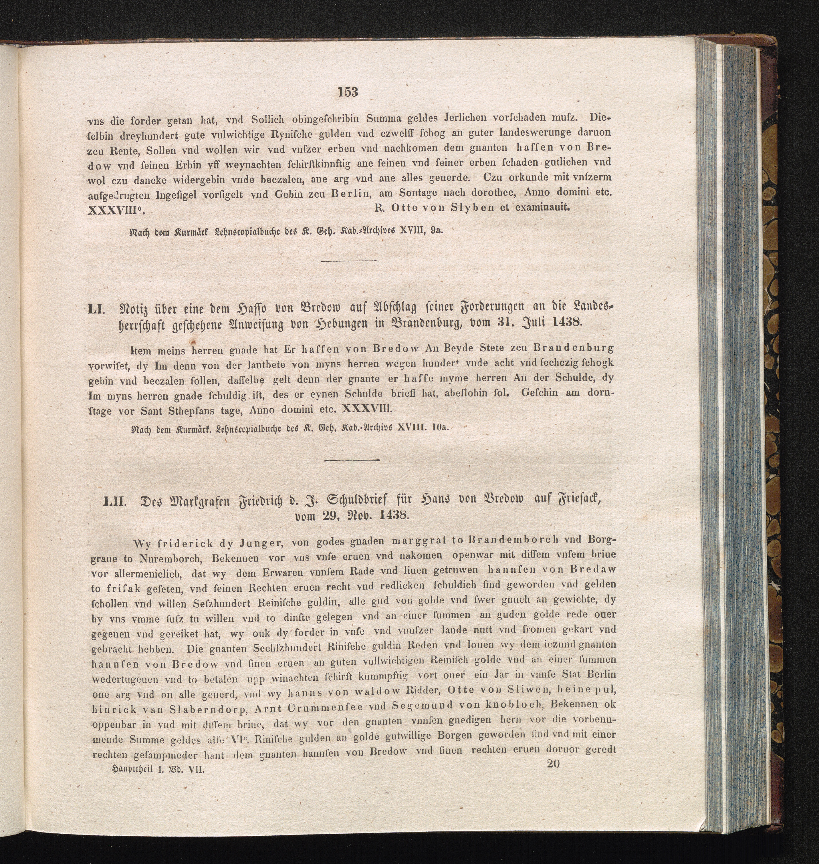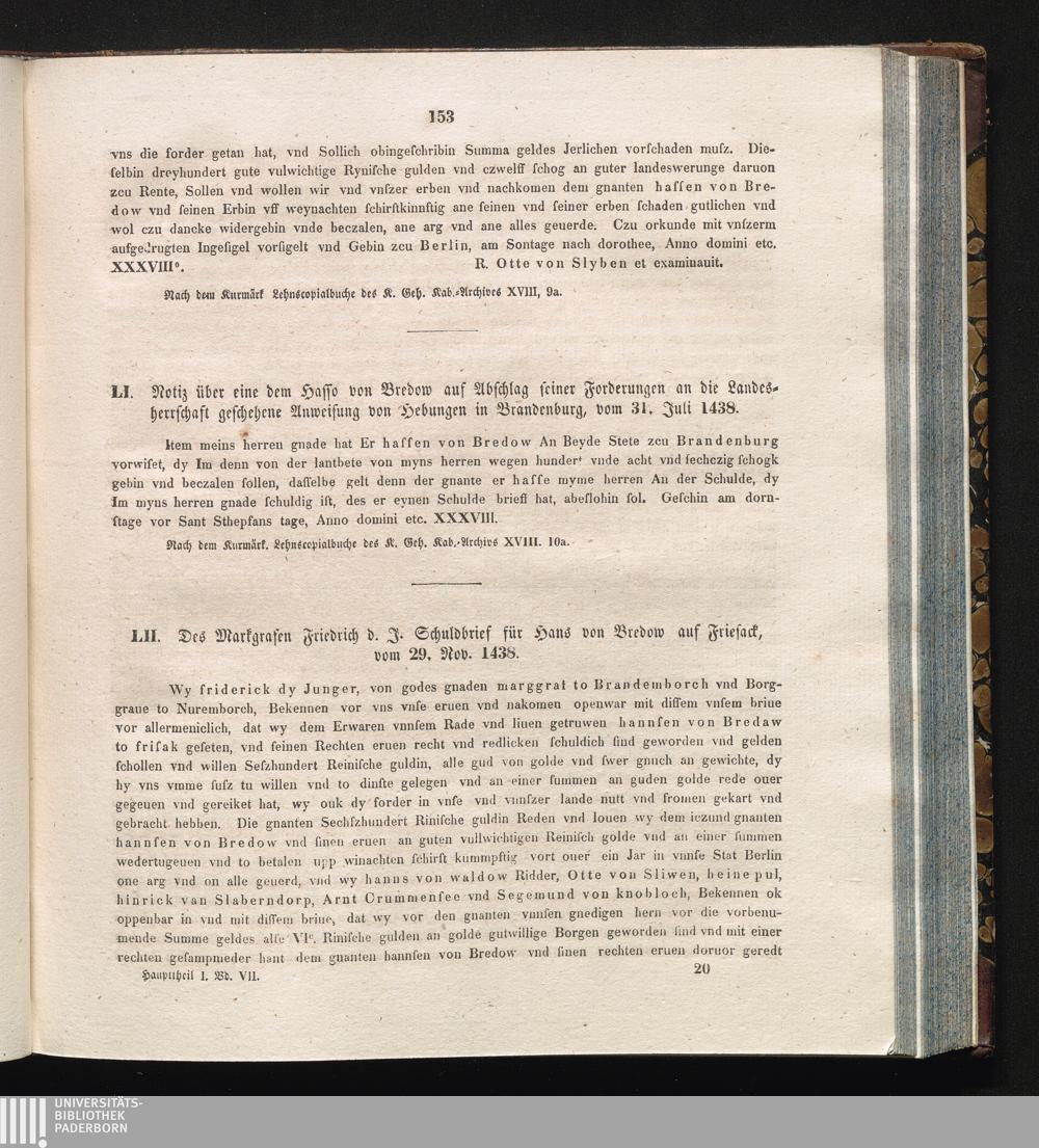 LII. Des Markgrafen Friedrich d. J. Schuldbrief für Hans von Bredow auf Friesack,[...]