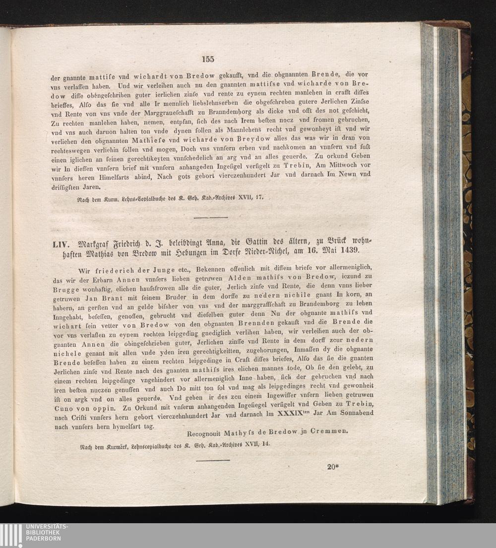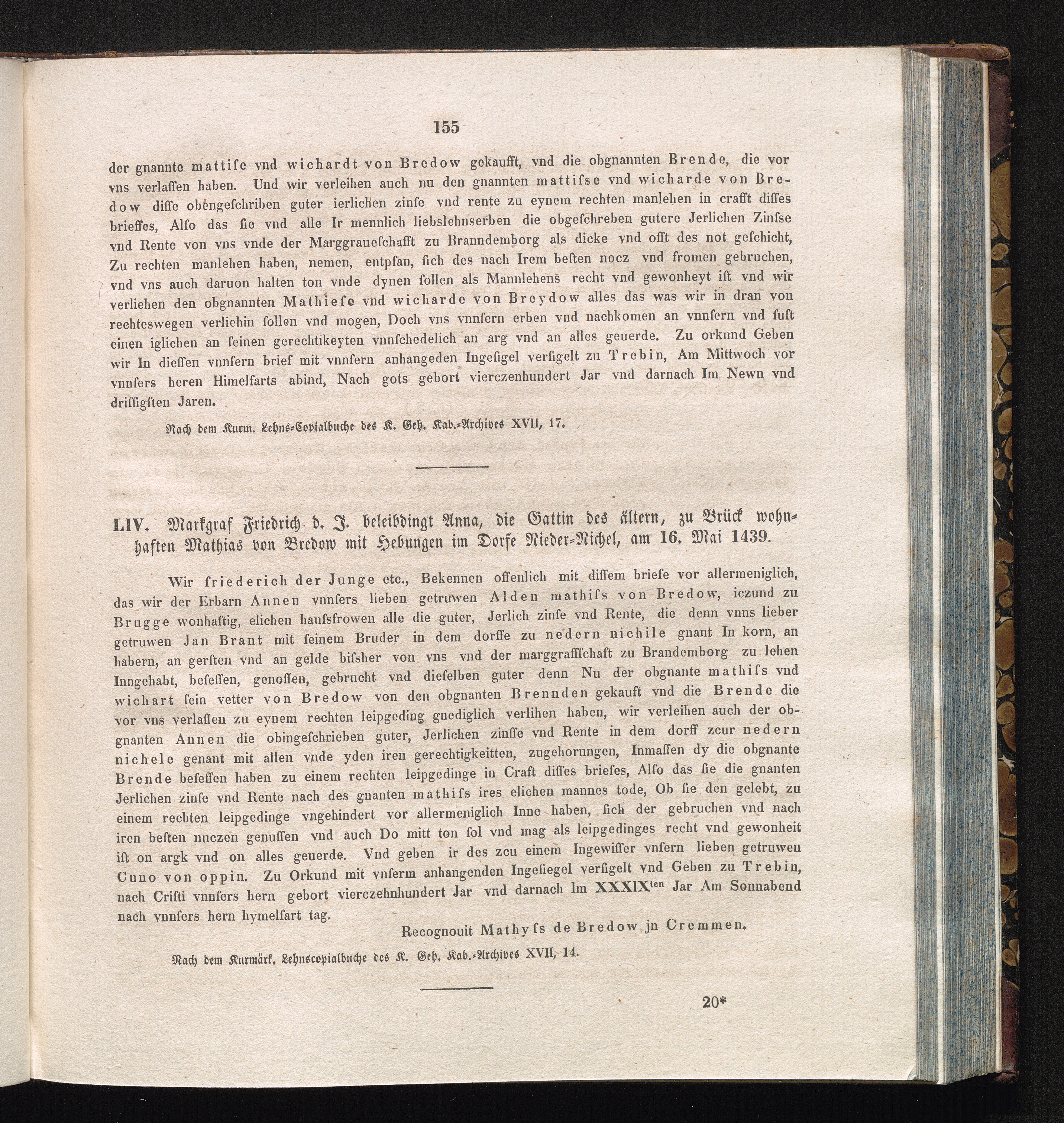 LIV. Markgraf Friedrich d. J. beleibdingt Anna, die Gattin des ältern, zu Brück wohnhaften[...]