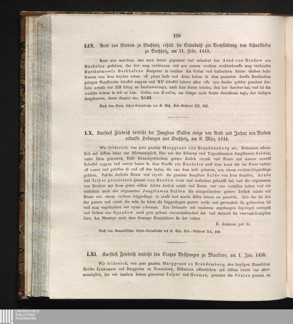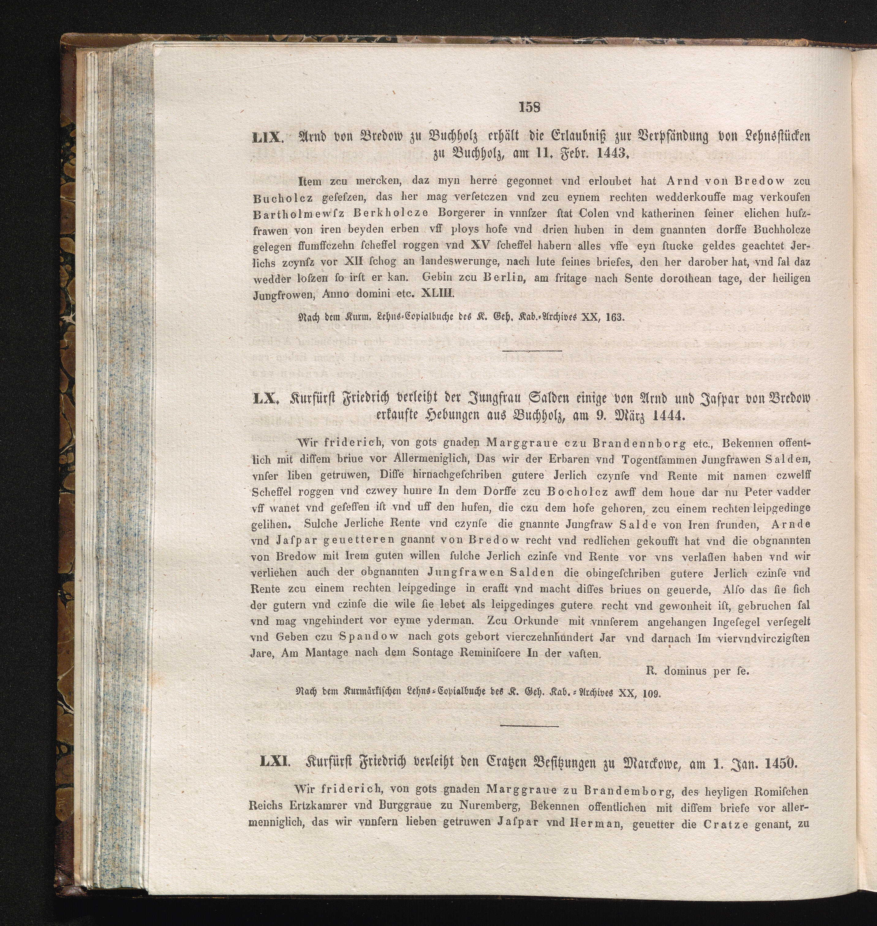 LXI. Kurfürst Friedrich verleiht den Cratzen Besitzungen zu Marckowe, am 1. Jan.[...]