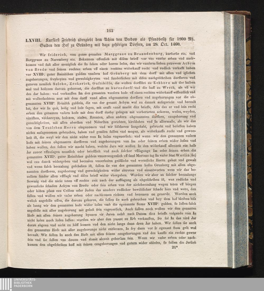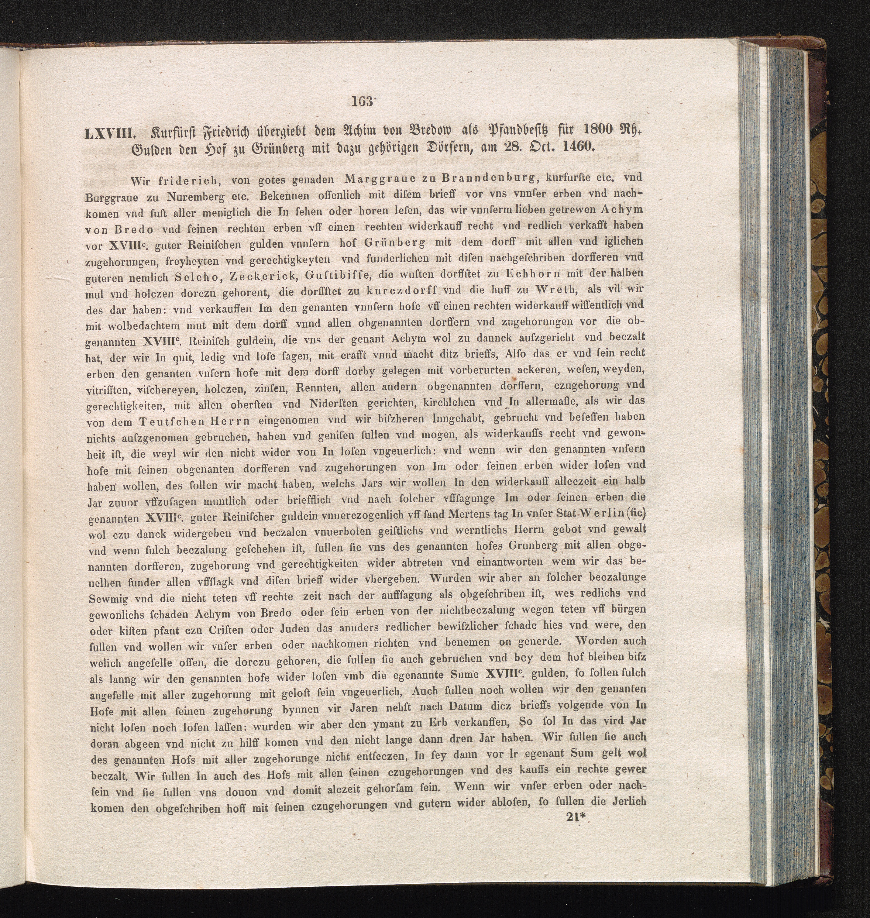 LXVIII. Kurfürst Friedrich übergiebt dem Achim von Bredow als Pfandbesitz für 1800[...]